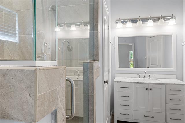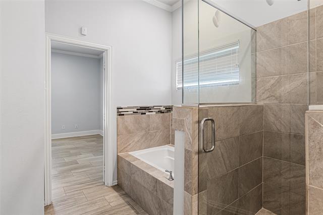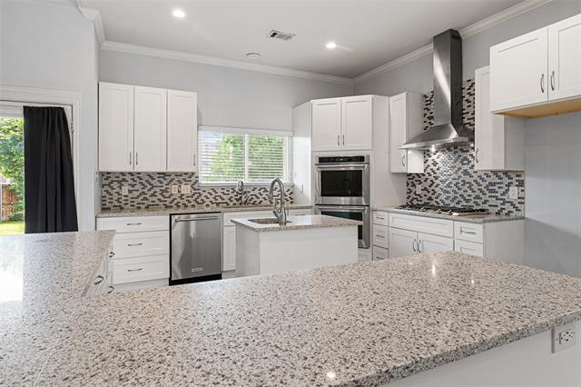 Available now for immediate move in! You can find a detailed video tour by searching this address on Youtube. This sprawling semi-custom single-story 3.2.2 features an open floorplan with split bedrooms and a gourmet kitchen at the center of it all. KitchenAid appliances, double ovens, 36inch Dacor gas stove, a prep sink in the island, white shaker cabinets, and 3cm granite countertops on a counter-height eat-in island! The house is fully tiled in light slate colored ceramic tiles making cleaning and maintenance a breeze. The primary suite is massive and has provisions pre-installed for tv mounting; frameless glass around the shower, jetted tub, single vanity, and two row WICs. Secondary bedrooms are adequately sized and can easily fit a queen bed in each room. The living area features vaulted ceilings and is pre-wired for CAT5 and surround sound speakers making this perfect for entertaining or for the home theather enthusiast. In the back you will find a standard 2 car garage with a very long driveway that could easily fit four or more cars. The backyard is equally spacious with soft bermuda grass turf and a large covered patio complete with an outdoor fireplace! This is a rare find in Rowlett and it certainly won't last long!