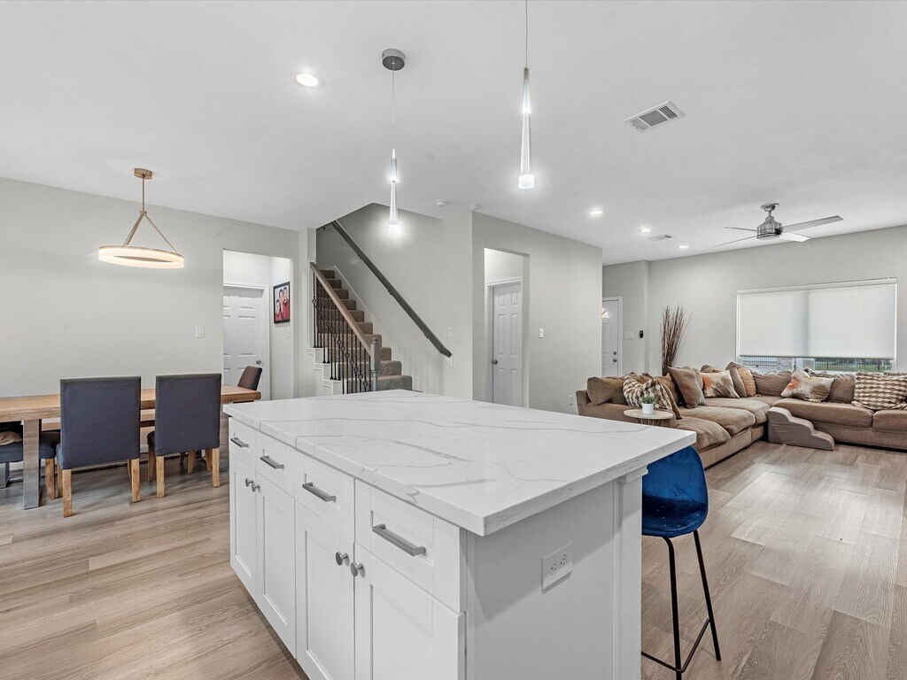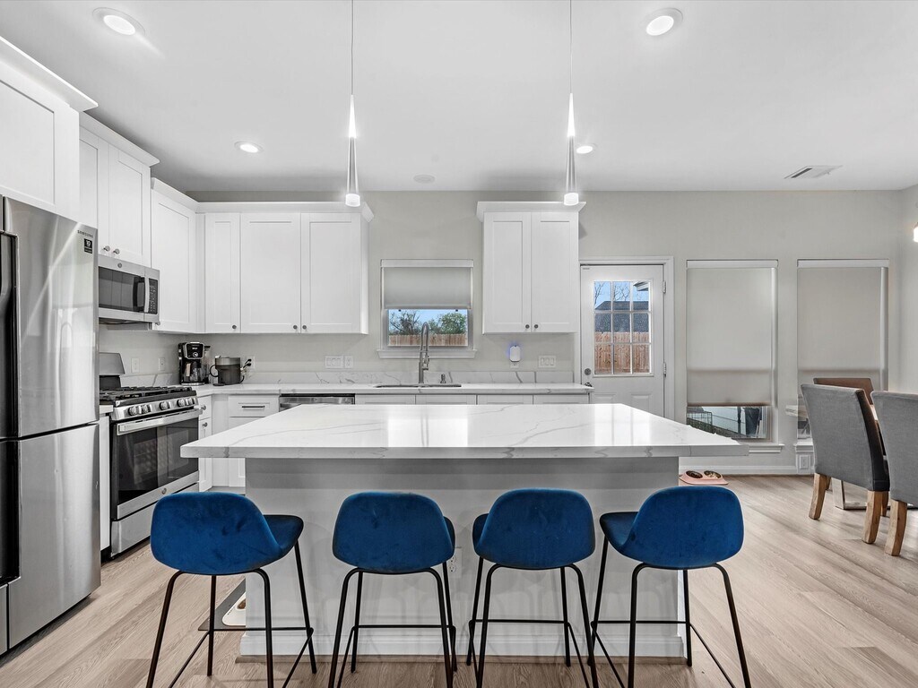 This spacious home features an open-concept layout with high-end finishes throughout,including quartz countertops,a stylish backsplash,and modern design touches that elevate the space. The primary bedroom is conveniently located on the first floor and features two walk-in closets,offering ample storage and privacy. The main living area flows seamlessly into the kitchen,making it perfect for everyday living and entertaining. All appliances stay,including refrigerator,washer,and dryer,and the home includes custom blinds for added comfort and privacy. Upstairs offers a versatile game room,ideal for a second living area,home office,or play space. Enjoy a large backyard with plenty of room to relax or entertain. Move-in ready and thoughtfully designed,this home offers modern comfort,space,and style. ASK ABOUT $1,000 DEPOSIT. MLS# 98432050