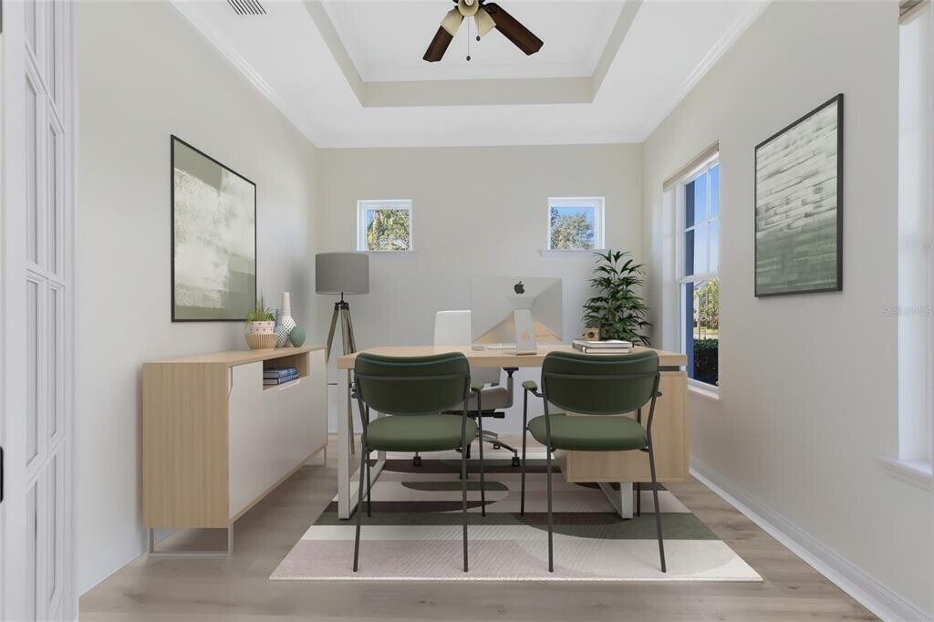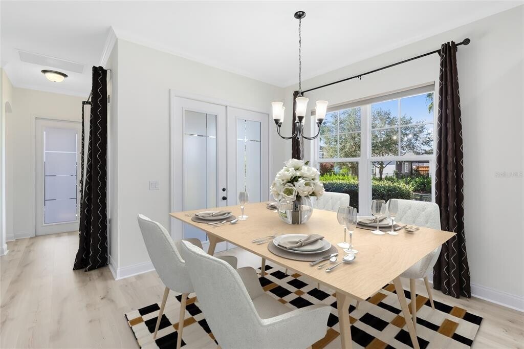 Experience modern comfort and timeless style in this beautifully refreshed single story David Weekley Fogel model,offering 3 bedrooms,2 baths,a private office,and a versatile flex space. Located on a fenced corner lot just steps from Laureate Park Elementary,this home blends open living,natural light,and thoughtful design across 2,384 square feet. Inside,you’ll find a bright open layout with freshly painted interiors,new flooring,and high ceilings that create a spacious,airy feel. The gourmet kitchen features granite countertops,42” cabinets,stainless steel appliances,double ovens,and a large center island that opens seamlessly to the dining and living areas—perfect for entertaining or everyday living. French doors lead to a covered brick-paved lanai,complete with a ceiling fan and fenced yard—ideal for relaxing outdoors in privacy. The primary suite offers a peaceful retreat with a tray ceiling,a large walk-in closet with custom shelving,and a spa-style bath with dual vanities and a walk-in shower. The dedicated office with glass French doors provides a quiet workspace filled with natural light,while the additional bedrooms and bonus room add flexibility for guests or family. Lawn care,pest control,and internet are included for your convenience. Laureate Park isn’t just a neighborhood—it’s a vibrant lifestyle. Enjoy the Aquatic Center,resort-style pools,LP Fit gym,and 44+ miles of trails. Located in prime Lake Nona,minutes from Medical City,the VA hospital,Nemours,dining,and shopping. Close to major highways,Orlando International Airport,and the USTA National Campus. Easy access to Orlando’s top theme parks and beautiful Florida beaches. Schedule your private showing today and experience the best of Lake Nona living. MLS# O6356238