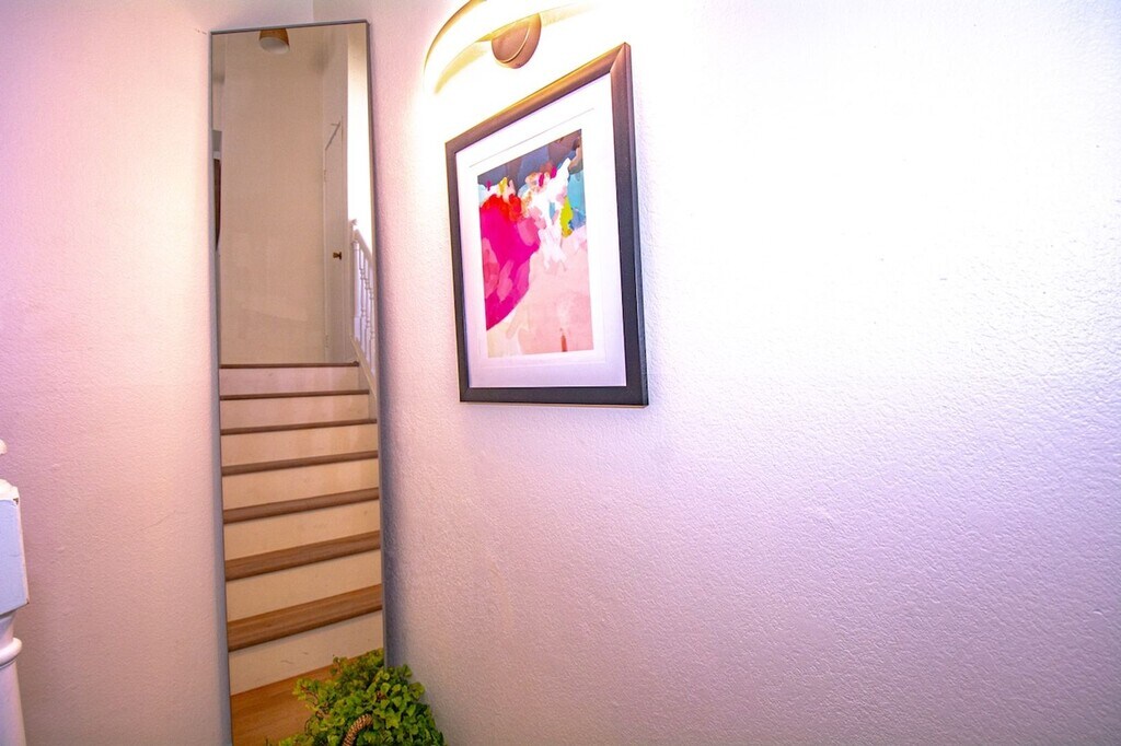 Beautifully maintained 2-bedroom, 1.5-bath condo located in the desirable Meadowood Village community. This two-story unit features all living space upstairs, offering added privacy and a spacious layout of approximately 1,000 sq ft. Enjoy a bright living room with vaulted ceilings, a cozy fireplace, and an open-concept design connecting to the dining area. The home has been freshly painted and features laminate flooring throughout. Additional highlights include a private balcony, full-size washer and dryer hookups, and direct access to a 2-car garage. Community amenities include pools and tennis courts. Conveniently located near shopping centers, schools, and with easy access to the 210, 10, and 15 freeways.