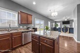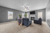 A charming, modern four-bedroom house, nestled in a quiet suburban neighborhood located in Carolina Plantations. The house boasts a spacious loft area that provides additional living space upstairs, and a cozy living room with a roaring fire. The backyard is privacy-fenced with a covered patio and ceiling fan, perfect for family gatherings.
