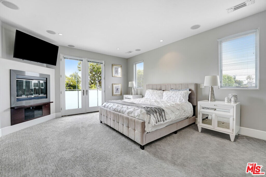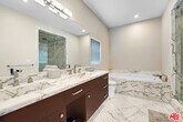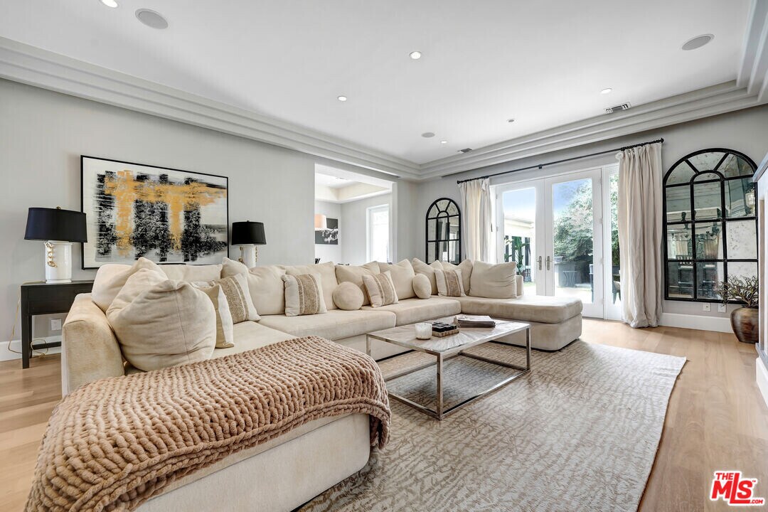 Contemporary Masterpiece! This contemporary dream home features a great-for-entertaining floor plan, grand living room, wet bar w granite counter-tops, & Venetian plaster finished wall fireplace. Formal dining room leads through the butler's station into a professional Chef's kitchen, large center island with sink, stainless steel appliances, custom made cabinetry, 32-bottle wine refrigerator, walk-in pantry, & breakfast area. The first floor also features a large bedroom suite & a luxurious venetian plaster powder room. Glide up the intricate modern staircase with designer railing to the second floor featuring three bedroom suites, including 2 Luxurious Master Suites with steam showers in white Carrera marble, bubbling spa tubs with massaging jets, state-of-the-art bidet toilets, custom made hardwood cabinets, designer sinks, boutique walk-in closets, and fireplaces. Expansive outdoor entertaining area, complete with cabana-style sitting area and lushly landscaped backyard. Enjoy the lifestyle of Melrose, West Hollywood, Beverly Hills, and Sunset Strip! MLS# 26647965