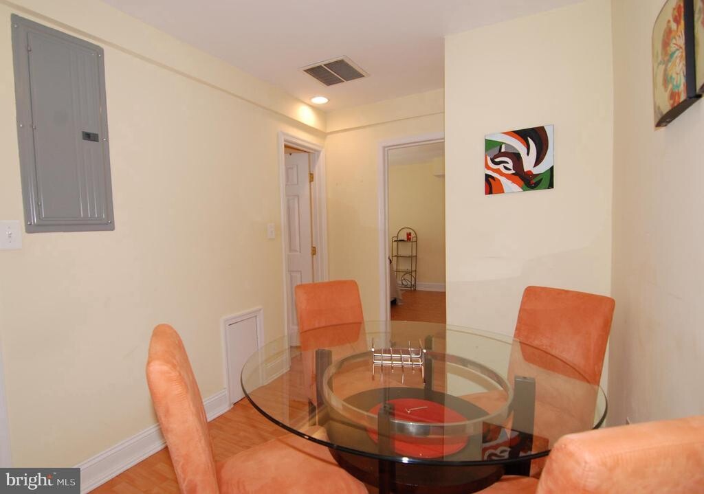 Charming, bright, and fully above-grade 1BR/1BA home in the heart of Takoma Park. This move-in-ready residence offers a spacious and thoughtfully designed layout with abundant natural light throughout. The updated kitchen features stainless steel appliances, granite countertops, recessed lighting, a breakfast bar, and a separate dining area—perfect for both everyday living and entertaining. The home includes a separate living room and dining room, highlighted by hardwood floors. The large bedroom offers generous closet space, while the tiled bathroom adds a clean, classic touch. A separate laundry and storage room with a stacked washer and dryer provides added convenience rarely found in comparable homes. There's also enough space to accommodate a small gym or set up an office. Sliding glass doors open to a patio and a fenced, shared yard surrounded by lush green space—an ideal extension of your living area. Unbeatable location: walk to local shops, and restaurants, with a bus stop right outside your door. Less than half a mile from the future Purple Line station and under two miles to both Takoma and Silver Spring Metro stations. Convenient to routes 495, 193 and 29- Location, Location, Location!!! Don’t miss this opportunity! ******* also available furnished - ask me for details******** OPEN HOUSE SATURDAY, FEB 21 12:00am - 2:00pm