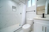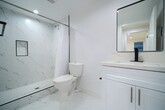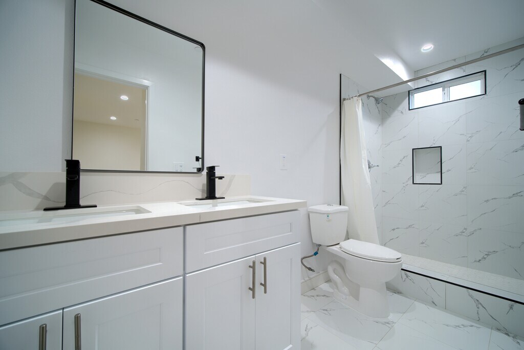 Welcome to 8414 1/2 McKinley Avenue, a beautifully crafted 2026 new-construction residence offering exceptional space, modern design, and a rare 5-bedroom, 5-bathroom layout that stands far above typical rentals in the neighborhood. This expansive two-story home has been thoughtfully designed with premium finishes throughout, featuring wide-plank flooring, recessed lighting, sleek black fixtures, quartz countertops, and elegantly tiled bathrooms reminiscent of high-end boutique hotel styling. The first floor includes three private bedrooms and three full bathrooms—each with contemporary finishes—along with a dedicated laundry room equipped with a washer and dryer, making day-to-day living effortless and highly functional for families or shared households. Upstairs, the second level opens into an impressively large great room that blends living, dining, and kitchen spaces into a bright, open-concept environment framed by oversized windows and clean, modern lines. The chef-inspired kitchen features custom white cabinetry, a spacious island, stainless steel appliances, and designer hardware, making it the perfect setting for cooking, entertaining, or gathering with friends and family. This floor also includes two generously sized bedrooms, each with its own full bathroom, offering comfort, privacy, and versatility for any living arrangement. The property comes fully equipped with ductless mini-splits, energy-efficient systems, and the added advantage of solar power to help reduce overall utility expenses. The gated lot offers secure on-site parking, and the home enjoys a prime central location with easy access to the 110 and 105 freeways, Metro lines, Downtown Los Angeles, USC, LAX, SoFi Stadium, and the Intuit Dome. Combining new-construction quality with a highly desirable floor plan and designer-level finishes, this residence offers exceptional value for families, professionals, students, or program-based tenants seeking a modern, comfortable home with abundant space. Homes of this caliber lease quickly—this is a must-see.