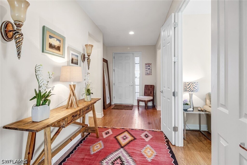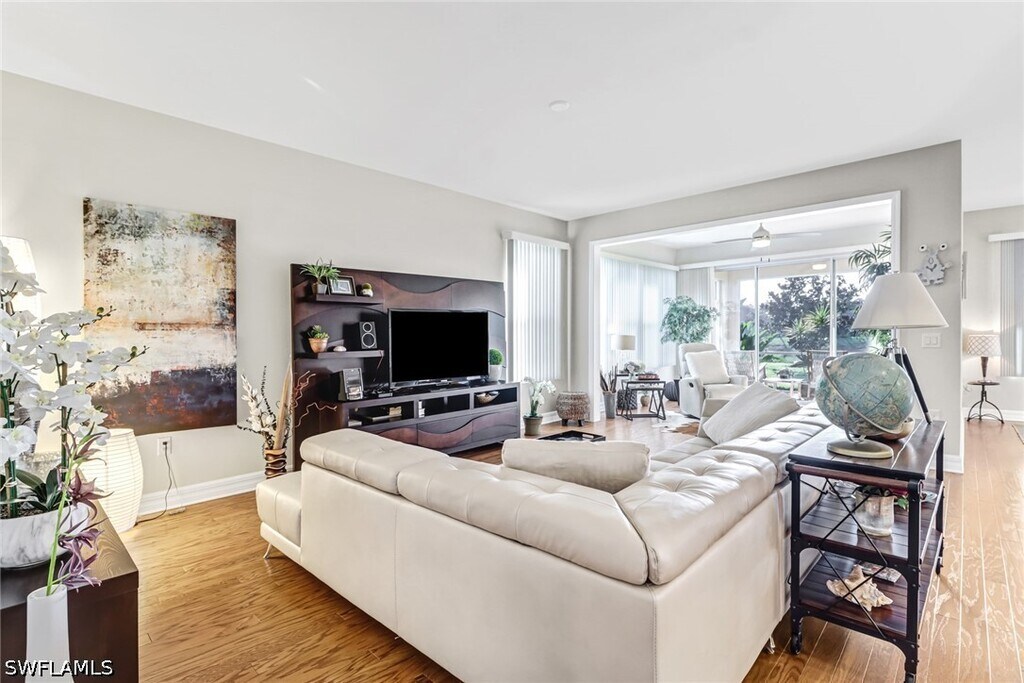 Available Now! Season 2027 open 4 month minimum. Fabulous two bedrooms plus den,two bathrooms,extended 2 car garage single family turnkey home in Verona Walk! Hardwood floors in the main living area and den,carpet in both bedrooms and tile in the bathrooms. Enjoy the florida lifestyle on your large screened-in lanai overlooking a lake. Main bedroom offers a king bed,and the ensuite bathroom features a double vanity with a huge walk-in shower,separate water closet and oversized walk-in closet. Spacious laundry room with a sink,folding station and cabinet storage above. The 2nd bedroom offers a king bed,and the guest bath has a single vanity and shower/tub combo. The den has a sofa chair with TV. Extended 2-car garage is 38' deep on one side allowing for room for a golf cart or extra storage. Verona Walk also has a gas station,restaurant,post office,shops all beautifully landscaped and maintained throughout the community! Available for annual rental or seasonal. Seasonal rates apply.