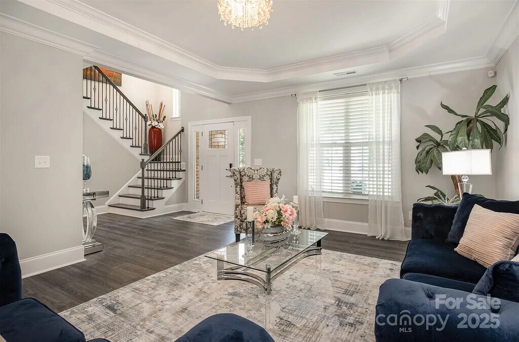 Room for rent: Custom-built in 2020, this modern home blends thoughtful design with high-end finishes, including two spacious primary suites and walk-in closets in every bedroom. Inside, enjoy 9ft ceilings, a gourmet kitchen with stacked microwave/oven, soft-close cabinets, and low-maintenance LVP flooring throughout—no carpet! The main suite is a true retreat with a 12.5ft domed tray ceiling, walk-in closet, and spa-style bath with double vanity and dual shower heads. Laundry is conveniently located upstairs. Step outside to a screened porch with ceiling fan, a fully fenced private yard, 16x20 fully permitted storage building, and an expansive driveway—perfect for entertaining or parking rec vehicles. Located on a quiet street with no HOA, just one block to Toby Creek Greenway and minutes to the LYNX Blue Line, I-85, I-485, shopping, and dining. A rare blend of comfort, convenience, and craftsmanship awaits. *Bedroom furnishing not removable Note: Do not visit this property without first contacting us to schedule a tour at the number below.
