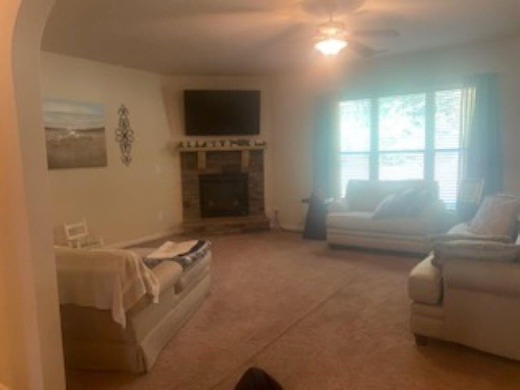 Lake Spivey Golf Club Community. Beautiful 4-sided brick home with 3 Bedrooms,3 Full Bathrooms and 1/2 Bathroom. Front porch that leads to a beautiful hardwood foyer with double trey ceilings. Large family room with a fireplace that opens to formal dining room with coffered ceiling. Serene view of private backyard. Large chef's kitchen that opens to the family room and breakfast dining area. Huge kitchen with granite countertops and island with large spacious cabinets. Large owner's suite on the main level with a walk-in closet,jacuzzi,separate tub and shower. Double sinks and tiled flooring. Secondary bedroom on the main level with high ceiling and a hall bath with laminate flooring. Coat,linen and storage closets on the main level. Wood staircase that leads to a large bonus room or office area which leads to a private huge bedroom with a sitting area,private full bathroom with a tub and shower combo. Washer and dryer located in laundry room. Carpet in the bedrooms,family room,office area/bonus room and formal living room. Private level backyard with wooded area view. HOUSE IS NOT FURNISHED. NO PETS. WASHER,DRYER,STOVE,REFRIGERATOR and MICROWAVE INCLUDED. FICO SCORE OF 600 REQUIRED. TOURS ALLOWED ONLY AFTER OCTOBER 2,2025.