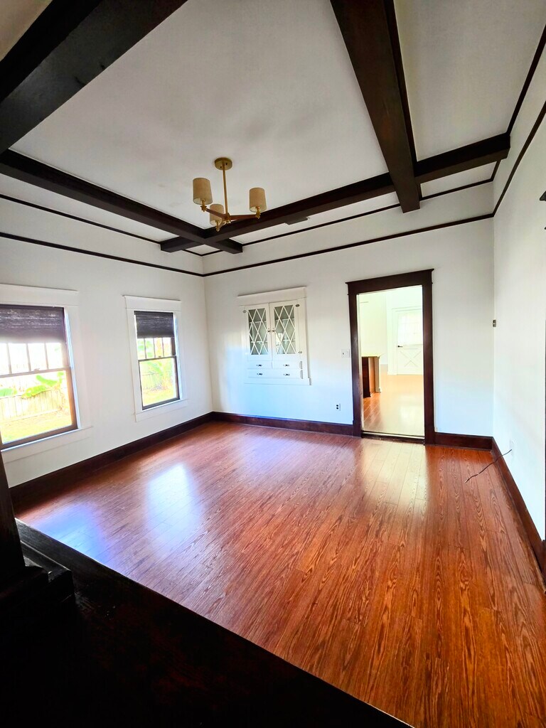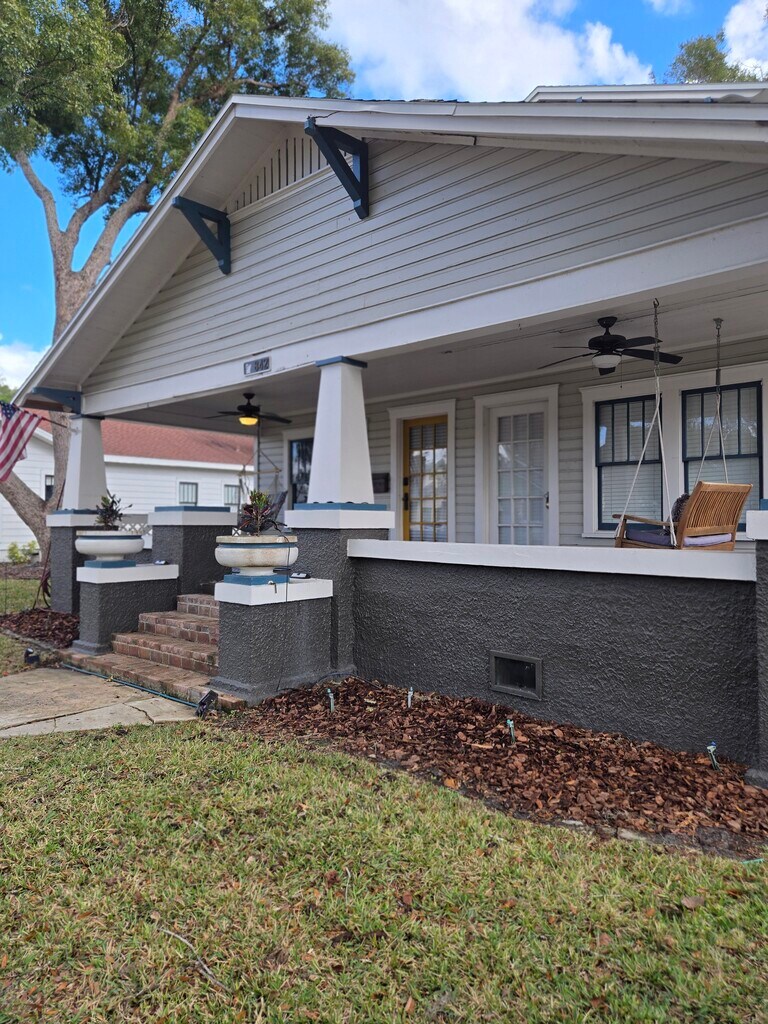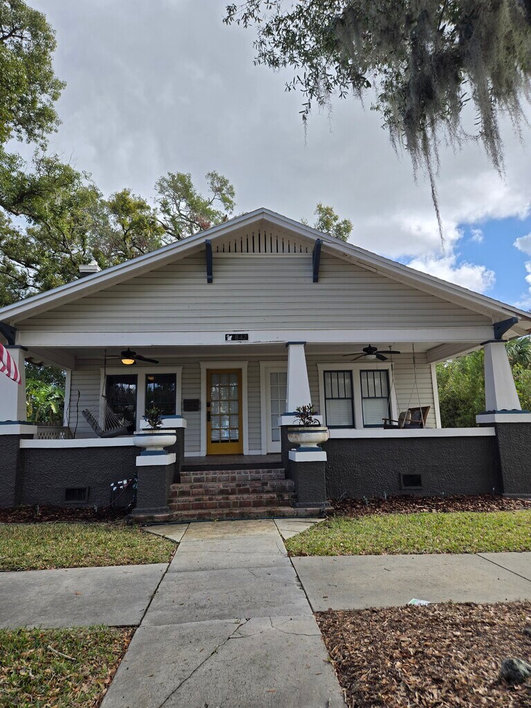 Welcome to your new home! Located in the historic Lake Morton Neighborhood minutes away from downtown Lakeland, you will be less than a mile from the lake, the public library, restaurants, and more. Bursting with character, this home has striking, unique features that make it stand out from any other typical rental. Step into a welcoming, warm space with wooden beams and floors. Enjoy the natural light pouring in from the large windows and accentuated by the high ceilings on the first floor. This home features a backyard with a large paved portion that includes a built in fire pit, deck, and plenty of space to relax or garden! With updates throughout the home, there is still an abundance of charm from high ceilings to the metal backsplash behind the stove. There are so many distinctive features that differentiate this space from any other home. Contact us for more information. Water and landscaping is included! Tenant is responsible for all other utilities.