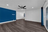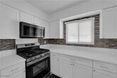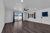 This upgraded single-story home offers a welcoming layout with a spacious living room and dining area, perfect for everyday living and entertaining. The kitchen features quartz countertops, a stylish backsplash, and stainless steel appliances. Each bedroom includes ceiling fans and ample closet space for convenience. Enjoy the backyard retreat with desert landscaping and a sparkling pool. A dedicated laundry room adds extra functionality to this thoughtfully designed home.