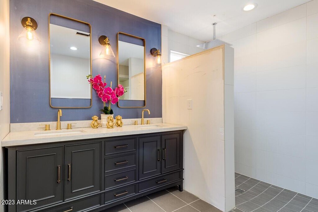 Updated Park Scottsdale unfurnished,3 bedroom,2 bath,single level N/S facing home w/ no steps,split floor plan w/ 2 car garage with EV charger. Hardwood floors,modern kitchen with Kitchen Aid appliances,quartz countertops,oversized butcher block island & white shaker soft close cabinetry w/ USB charging. Sleek bathrooms both with dual vanities. Harwood floors continue in 2nd bedroom,built out closets. Neutral paint throughout living areas w/ designer lighting in all rooms. Additional office space separated from living room for privacy. Main bedroom with custom walk-in closet,bathroom with large zero entry shower with huge rain showerhead. Dual access to laundry,washer/dryer included. Low maintenance front & backyard with artificial turf. On private Cul de Sac St Owner/Agent