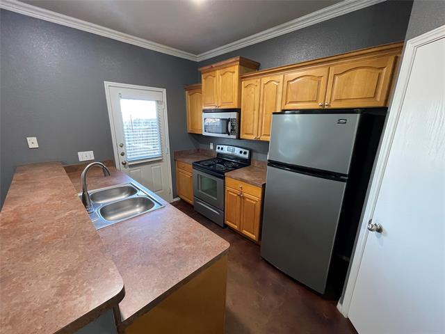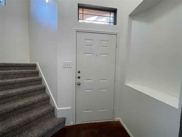 Well-Maintained two story Duplex for rent in White Settlement. 1394 Sq Ft. The property offers an open floor plan with a large living room. The kitchen features stainless steel appliances, a breakfast bar, and an adjacent dining area. Etched concrete flooring for easy maintenance in living, dining, kitchen, entry and half bath. All bedrooms and 2 full baths are located upstairs. Large master bedroom with walk-in closet and private bath. Additional bedrooms are spacious with good closet space. Private fenced back yard. 1 car attached garage. Separate utility room. Pets welcome! FRESH paint! NEW Carpet!