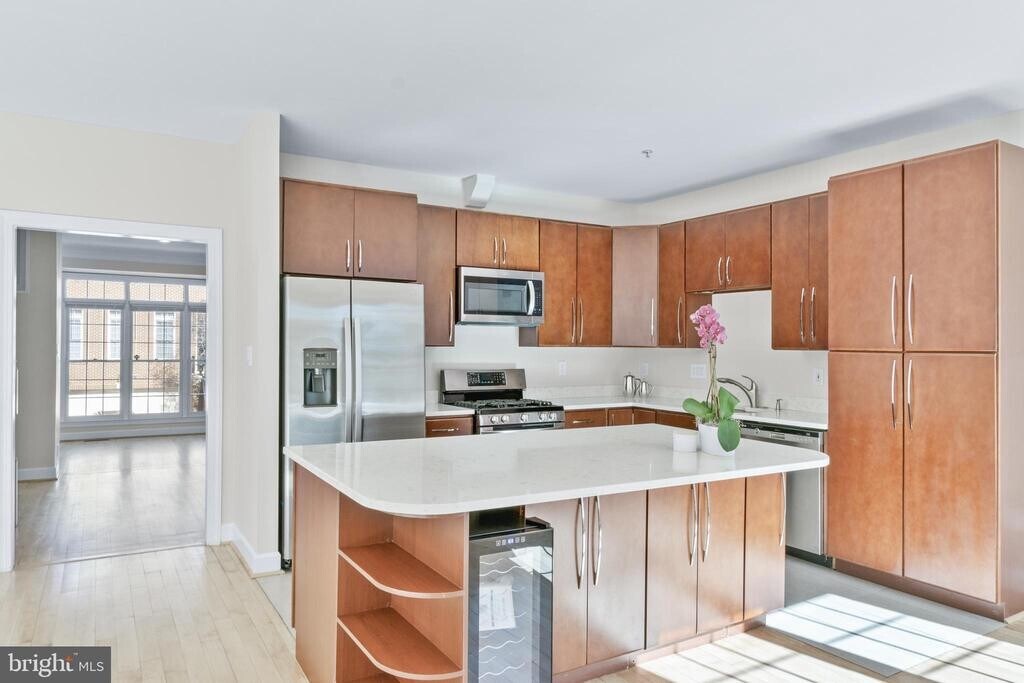 Rarely available brick-front townhome for rent in Bells Mill Estates! This spacious 3BR/3.5BA home features soaring ceilings, sun-filled living and dining areas, hardwood floors, and French doors leading to a large deck backing to trees. The kitchen with breakfast area opens to a cozy family room—perfect for everyday living and entertaining. Upstairs offers vaulted ceilings, a generous primary suite with walk-in closet and bath, plus two additional bedrooms and a full bath. The finished walk-out lower level includes a fireplace, flexible rec space or guest area, full bath, laundry, and access to the garage and a fully fenced-in new turf ,easy maintenance yard. Enjoy a beautiful community with green space, gazebo, and tot lot—just minutes to Cabin John Shopping Center, Pike & Rose, Metro, and major commuter routes.