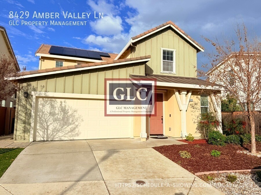 Welcome to 8429 Amber Valley Ln, a beautifully maintained 3-bedroom, 2.5-bath home located within a safe and desirable gated community in Elk Grove, CA! Nestled in a quiet, well-kept neighborhood, this inviting residence offers 2,254 sq. ft. of thoughtfully designed living space that blends comfort, functionality, and modern convenience. From the moment you arrive, you’ll appreciate the peaceful surroundings and welcoming atmosphere that make this home truly special. Highlights: Spacious open-concept layout filled with natural light Solar system for reduced energy costs and improved efficiency Central heating and air conditioning for year-round comfort Neutral tones and clean finishes throughout In-unit laundry for everyday convenience Attached garage with additional storage space Living & Interior Features: Large living and dining areas ideal for relaxing or entertaining Bright, airy layout designed for both daily living and gatherings Thoughtfully designed floor plan offering privacy and flexibility Kitchen & Appliances: Modern kitchen with ample white cabinetry and generous counter space Stainless steel appliances Large center island perfect for cooking, dining, and entertaining Open flow to the main living area, creating a warm and connected space Bedrooms & Bathrooms: Spacious primary suite featuring a spa-like bathroom Soaking tub, dual vanity, and separate shower in the primary bath Generously sized secondary bedrooms 2.5 bathrooms offering comfort and convenience for residents and guests Exterior Features: Covered patio with pergola, perfect for outdoor dining or relaxing Low-maintenance backyard ideal for easy upkeep Private outdoor space designed for everyday enjoyment Bonuses: Gated community providing added peace of mind Quiet, family-friendly environment Conveniently located near parks, shopping, dining, schools, and major roadways This home offers the perfect combination of space, efficiency, and comfort in one of Elk Grove’s most convenient locations. If you’re looking for a home that feels warm, welcoming, and move-in ready, 8429 Amber Valley Ln is a place you’ll love coming home to. Tenant is responsible for all utilities No smoking allowed and no record of evictions as per policies. Property tours are allowed for prospective tenants who meet income and credit score criteria. For further clarification, contact GLC Property Manager.