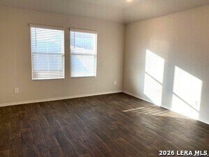 This beautiful 3-bedroom, 2-bath home, built in 2021, offers a modern design with a desirable split bedroom floorplan. Included with this charming home are a Samsung refrigerator, LG washer and dryer, large-screen TV, water softener, and garage door opener. You'll also love the blinds and solar screens on every window, which keep utilities down. The primary suite is privately split from the secondary bedrooms, providing added comfort and separation. The primary suite is privately split from the secondary bedrooms and is a relaxing retreat with a custom accent wall, a huge walk-in closet, and an abundance of natural light. Two additional bedrooms and a full bath are located on the opposite side of the home, ideal for guests, family, or a home office. The open-concept living area flows seamlessly into the kitchen, making it perfect for everyday living and entertaining. With contemporary finishes throughout and a layout designed for comfort and functionality, this home is move-in ready and a great way to start the year. Enjoy access to community amenities including a pool, playground, and scenic walking trails. Easy access to I-10 and only a short drive to The Guadalupe River!