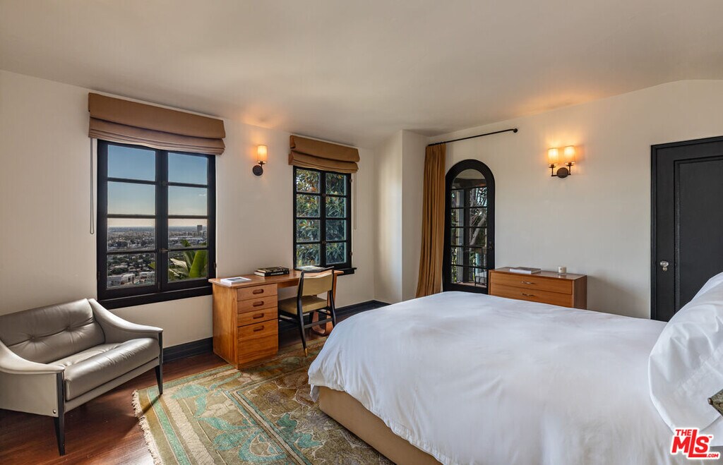 Perched above the Sunset Strip, this impeccably restored 1926 Spanish Revival by architect Robert Finkelhor commands cinematic, uninterrupted views from downtown to the Pacific. A timeless Spanish facade opens to warm, modern interiors defined by hand-textured plaster, sunlit rooms, and beautifully preserved architectural details. Gracious living and dining spaces flow to multiple terraces that frame the sweeping panoramas and seamlessly extend living outdoors. The residence offers six bedrooms and five-and-a-half baths, including a serene primary suite with sitting room and marble bath. A separate flex outbuilding serves as an ideal studio, gym, office, or creative workspace. Wellness amenities include a sauna and cold plunge, while a saltwater pool and spa sit against the home's dramatic city-to-ocean backdrop, surrounded by mature landscaping and private outdoor areas. A serene, private retreat with an effortless, refined calm just moments from the Chateau Marmont, Sunset Tower, and the energy of the Sunset Strip. MLS# 25623851