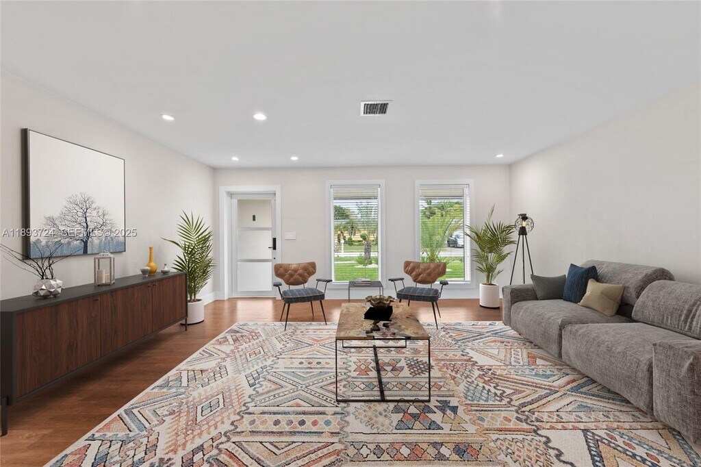 This impeccable one-story single-family home in Saga Bay offers over 1600 sf of living with 3 bedrooms & 2 full bathrooms, featuring smart home upgrades, a two-car garage, large terrace and a laundry room is available now. The open kitchen with a gas stove and elegant wood cabinetry flows into the family room overlooking a spacious covered terrace. The primary suite includes two closets—one walk-in—and all bedrooms have built-in organizers. Ideal for entertaining, the large terrace features a freestanding bar and plenty of space for outdoor dining and relaxation. Additional highlights include impact windows and doors, beautiful front landscaping, and landscape maintenance included in the rent. Located in a very quiet Saga Bay/Cutler Bay neighborhood close to parks, schools, and shopping. MLS # A11893724