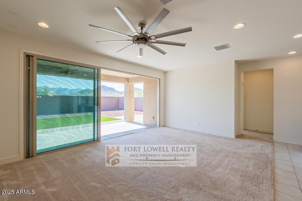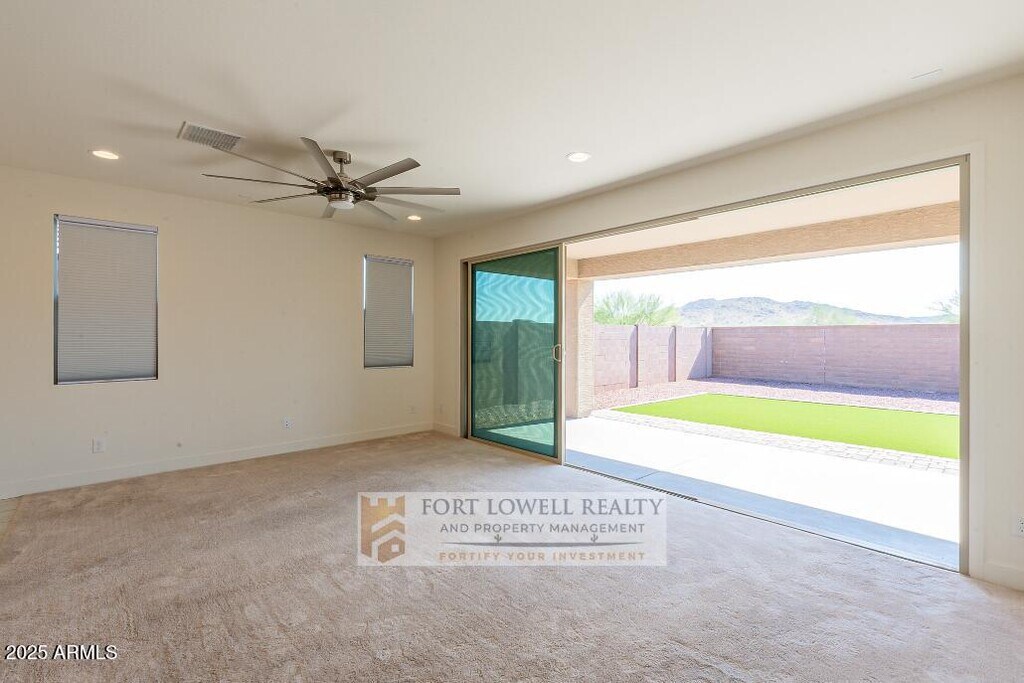 Don't miss out on this amazing opportunity to stargaze from a beautiful brand new home with breathtaking views of the Estrella Mountains. This low maintenance property is located in the new Lucero Development and boasts a turfed and paved backyard. The 16' door wall provides seamless indoor/outdoor living while offering spectacular views of the Estrella Mountains. The house is equipped with Quartz Countertops featuring a stunning waterfall edge,upgraded appliances such as a gas range,refrigerator with water/ice dispenser,dishwasher,washer and dryer,top down/bottom up blackout shades,2 Car Garage,wired for full home audio system,and much more!! The community offers access to the Yacht Club and 2 Fitness centers,walking trails,and easy access to I10.