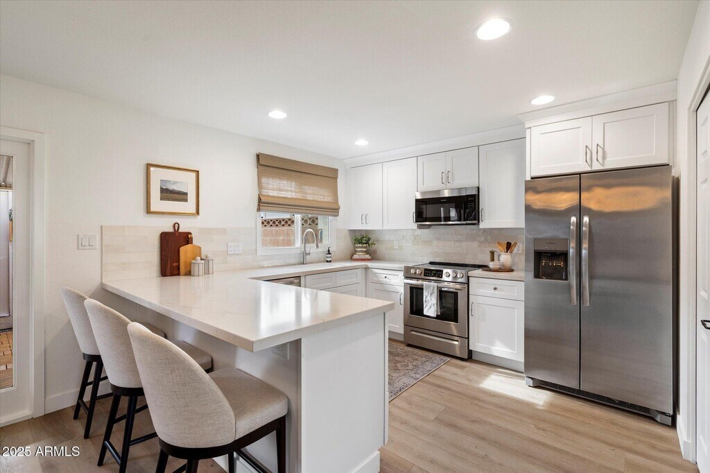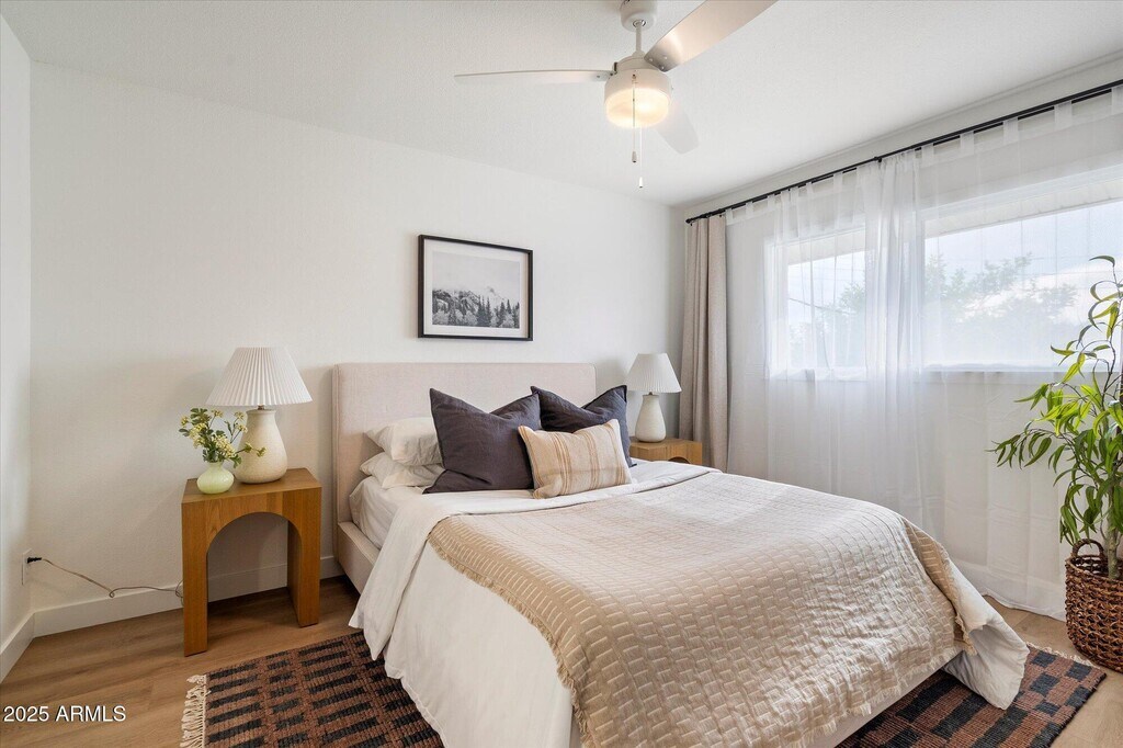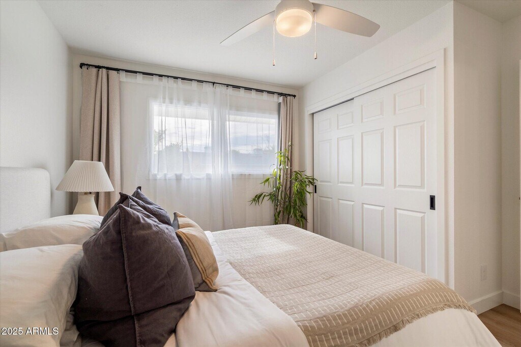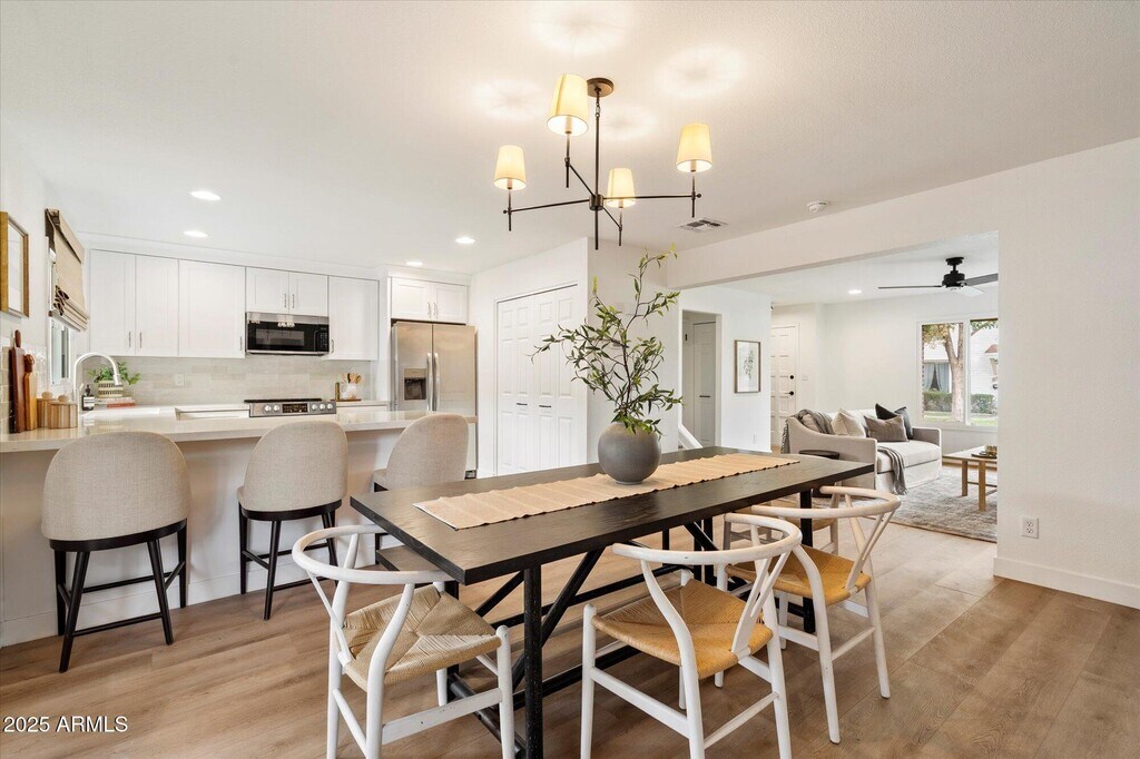 Charming traditional style townhouse is located in the heart of Scottsdale. Close by to parks,walking and biking paths,restaurants and near Old Town Scottsdale. The property has been completely renovated top to bottom with beautiful finishes and a welcoming spacious open concept floor plan. The main level of the home features an entry foyer,living room,hall to coat closet and powder bath,dining room,full kitchen and laundry adjacent. Second floor has 4 bedrooms including a primary suite,open hallway to secondary bedrooms,hall bathroom and linen closet. French doors off the dining room lead to the private and spacious outdoor patio which is equipped with new gravel,metal shade awning,citrus tree for shade,outdoor storage shed and 2 reserved covered parking