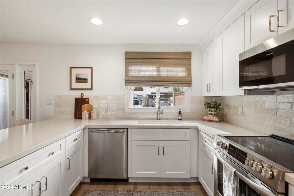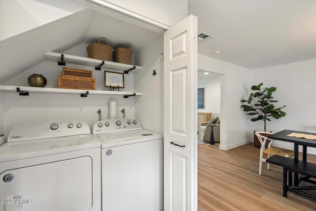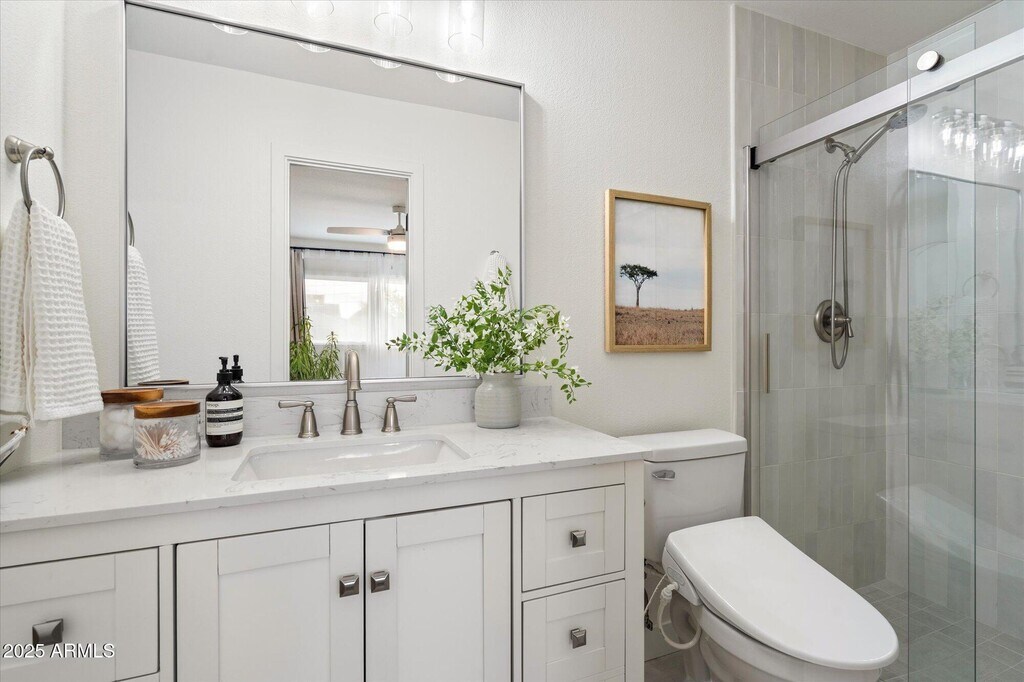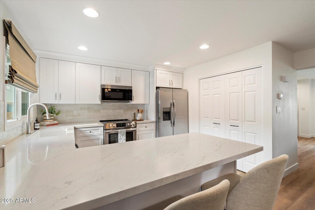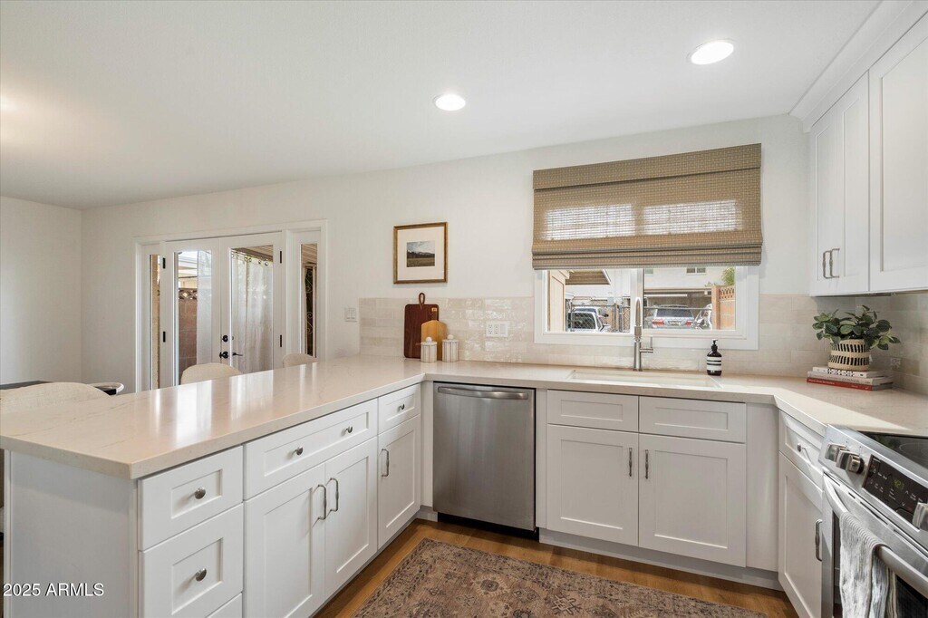 Charming traditional style townhouse is located in the heart of Scottsdale. Close by to parks,walking and biking paths,restaurants and near Old Town Scottsdale. The property has been completely renovated top to bottom with beautiful finishes and a welcoming spacious open concept floor plan. The main level of the home features an entry foyer,living room,hall to coat closet and powder bath,dining room,full kitchen and laundry adjacent. Second floor has 4 bedrooms including a primary suite,open hallway to secondary bedrooms,hall bathroom and linen closet. French doors off the dining room lead to the private and spacious outdoor patio which is equipped with new gravel,metal shade awning,citrus tree for shade,outdoor storage shed and 2 reserved covered parking
