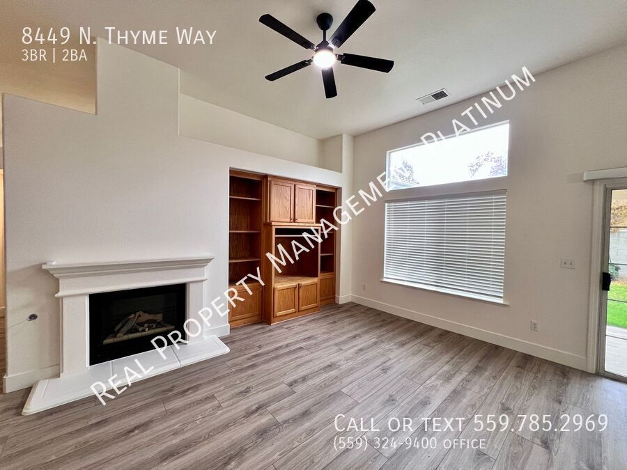 CLICK HERE to schedule a showing: 3 bedroom | 2 bathroom | 1,858 sq ft | 1998 Build New paint and vinyl flooring throughout house. Lovely single story home with flex space, and skylight windows. Spacious great room featuring windows that fill the space with plenty of natural light. Open kitchen features tile countertops, refrigerator, built-in microwave, gas stove/oven, and dishwasher/disposal. 3 spacious bedrooms with high ceilings each featuring a ceiling fan. Primary bedroom features a spacious walk-in closet, and beautiful en suite with extended vanity, 2 sinks, soaking tub, walk-in shower, and private toilet room. Interior laundry room including a washer and dryer. Attached 3 car garage. Spacious backyard, fully landscaped ready to be enjoyed. Yard Care is included. 1 Small Pet considered with additional pet rent and deposit. Credit score above 650 REQUIRED. No smoking. Tenant responsible for all utilities. Renters Insurance is required. HOA included, amenities include a gated community and park right across the street from the property. Cross streets Chestnut and Teague. Clovis school district. Call to schedule a showing or to contact the office. DRE# 01901101. All information is deemed reliable but not guaranteed and is subject to change. Gated Community Non Smoking Renter's Insurance Required