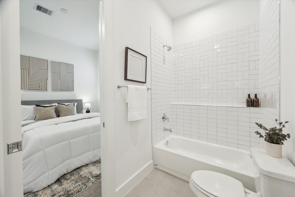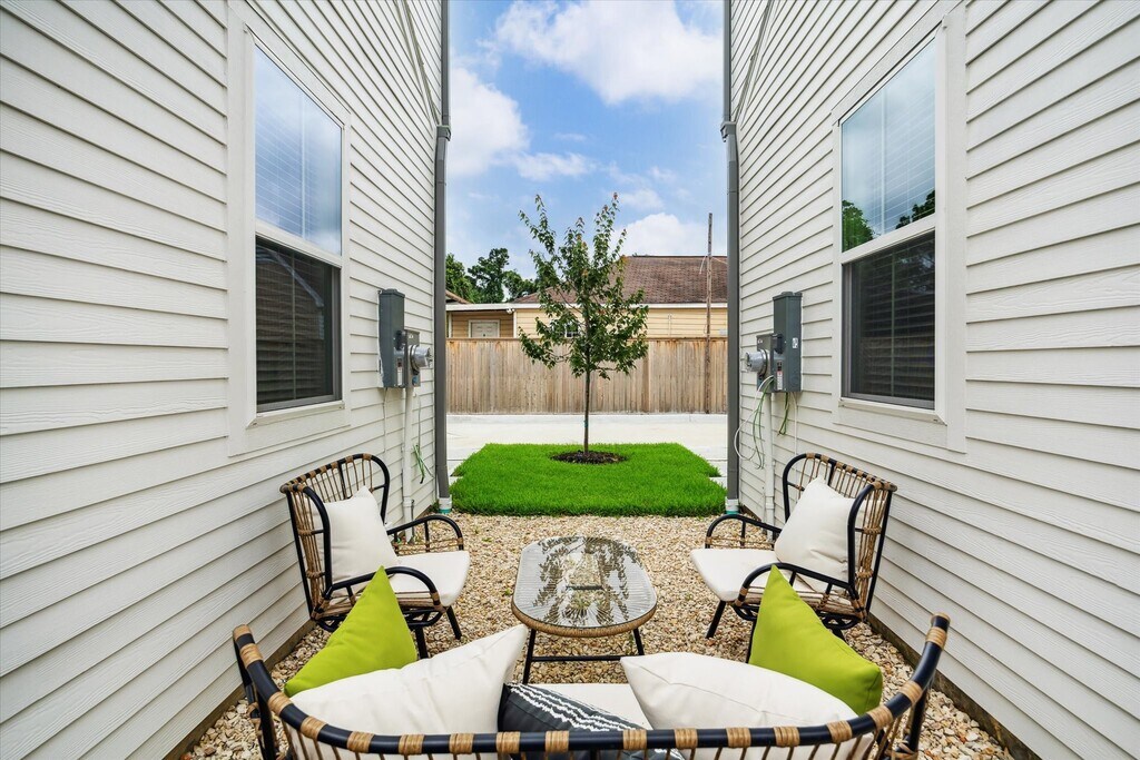 Be the FIRST to live in this Prebisch Home! An exquisite collection of 4 freestanding homes in a gated community with NO HOA! These meticulously designed homes offer 3 bedrooms,2.5 bathrooms,and are thoughtfully crafted with seamless flow,clean lines,abundant natural light,small gardens,blinds throughout and the peace of mind of a builder warranty. The first floor offers two bedrooms,a full bathroom,and a bench area for backpacks,coats and storage. The kitchen is a true standout,featuring stainless steel appliances,a farmhouse sink,two toned cabinetry,quartz countertops,and floating shelves. Upstairs,experience the grandeur of the open-concept living/dining/kitchen space with soaring 16 foot vaulted ceilings and beautiful LVP floors. The luxurious primary suite includes an en-suite bathroom with a walk-in shower,double vanities,a transom window,and a spacious walk-in closet. Conveniently located near I-45 & 610 & just 12 minutes from Whole Foods,Aldi,and HEB! MLS# 56490777