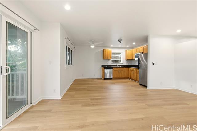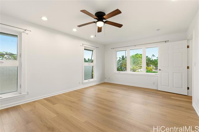 Welcome to this beautifully renovated 4-bedroom, 3-bath, home with 2-car garage offering approximately 2,700 sq ft of living space, ideally located near the right-of-way leading directly to stunning Kailua Beach. Situated on a large lot with a lush, private yard, this exceptional property combines island living with modern comfort. The home has just undergone a major renovation and features brand-new appliances, window AC units, new composite and tile flooring throughout, and a sparkling pool—perfect for relaxing or entertaining. The spacious layout offers flexibility for a variety of living arrangements. The upstairs level features a private entrance and includes a large bedroom, living area with wet bar, and a balcony overlooking the pool, creating an ideal retreat for guests or extended family. Conveniently located near shopping, dining, MCBH, and with easy access to H-3 for commuting to Pearl Harbor, this home offers both tranquility and accessibility. Enjoy the best of Kailua living near one of Oahu’s most beautiful beaches. Pool and yard service are included in rent and pet is negotiable with $1,000 pet deposit.