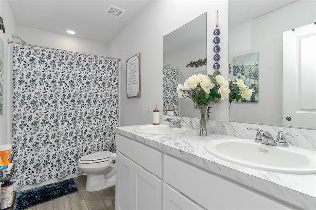 Welcome to your next home! This beautifully maintained home offers 6 generously sized bedrooms, including 2 master suites, 3 full bathrooms, and 1 convenient half bath, perfect for multi generational or large families. This home also includes a flex space which can also be used as an office or formal dining room. Upstairs includes a second large living space which can be an additional family room or play space. The laundry room comes equipped with a washer and dryer for your convenience. The kitchen has granite countertops and stainless steel appliances. There is a double oven and refrigerator that provides filtered water and makes specialty ice. Enjoy outdoor living in the fully fenced backyard, perfect for pets, kids, or weekend gatherings. The 2-car garage offers secure parking and additional storage space along with a driveway offering parking for additional cars.