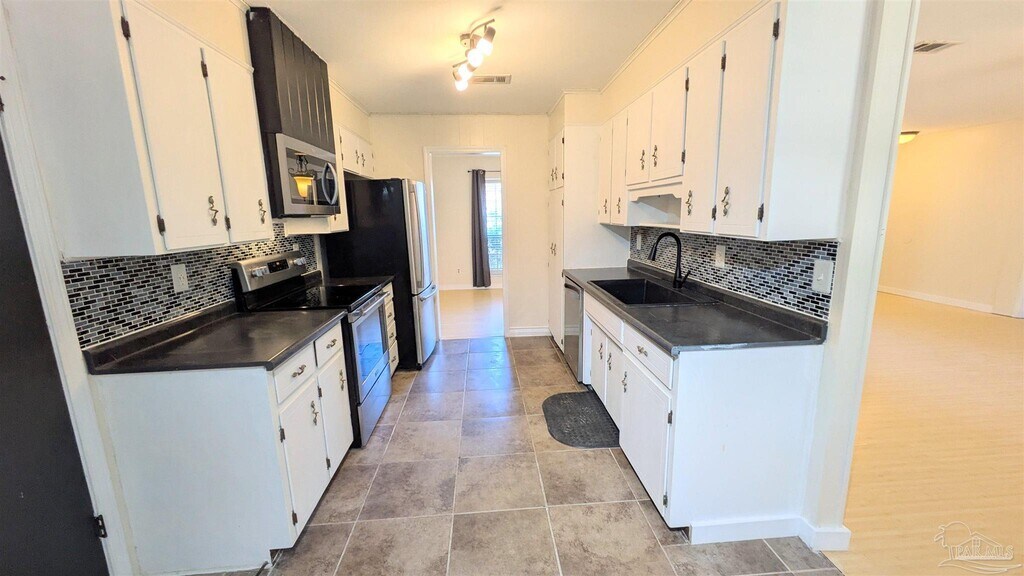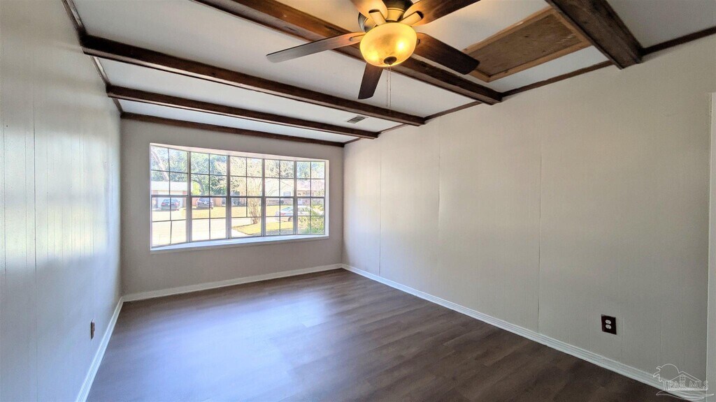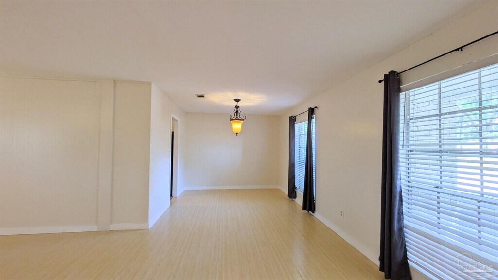 8455 Lofton Dr is a great 4 bedroom,2 bath home nestled into a quiet neighborhood in Northeast Pensacola. The front door opens to a large great room with wood floors and abundant natural light. To the right,the great room transitions seamlessly into a formal dining area with attractive overhead light fixture. Opening to the great room and the dining area,the kitchen offers abundant cabinet storage and counter space,as well as an updated dishwasher and refrigerator. Adjacent to the kitchen,family dining area overlooks the backyard. Off the kitchen,the 4th bedroom and laundry room have been recently painted. The large master bedroom at the end of the hallway features tile flooring and an intimate bathroom with shower and an updated bowl sink. Two additional bedrooms and an additional full bath round out the living space of this home,each bedroom featuring plenty of warm natural light. The laundry/utility room opens to the backyard for easy cleanup after yard work or projects. Outside,the backyard is extremely large and completely fenced. Patio space and a fire pit make this a perfect space for year-round fun. The backyard gate opens directly from the driveway for easy boat or vehicle storage. Within minutes of this home,find plenty of options for shopping,restaurants and schools. The interstate is close by for quick commuting anywhere in Pensacola or a quick drive out to Pensacola Beach. This property requires participation in the MSPM Tenant Benefit Package for an additional monthly fee. Additional information on this program can be found upon submission of application.
