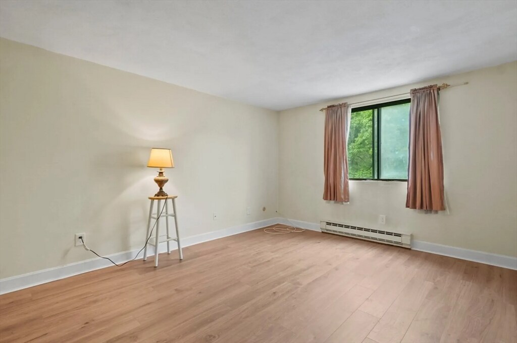 This updated, 1 bedroom condo conveniently located in a professionally managed association is ready and waiting for its newest owner. Spread out over 720 square feet of living space, this unit offers a beautifully updated and well appointed kitchen with new cabinets, granite countertops, black/stainless appliances and a built-in wine fridge. The breakfast bar opens the kitchen up to the living/dining area featuring brand new flooring and a slider to the private balcony overlooking the woods of Hawkes Pond. The spacious bedroom has new flooring with a large walk-in closet and the renovated full bathroom with a tiled shower and tile flooring completes the layout. Just in time to enjoy the summer relaxing by the outdoor pool! Excellent opportunity to live close to commuter routes and area amenities all while being tucked back amongst the natural landscape that surrounds this community. Schedule your showing QUICK!