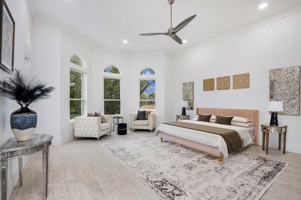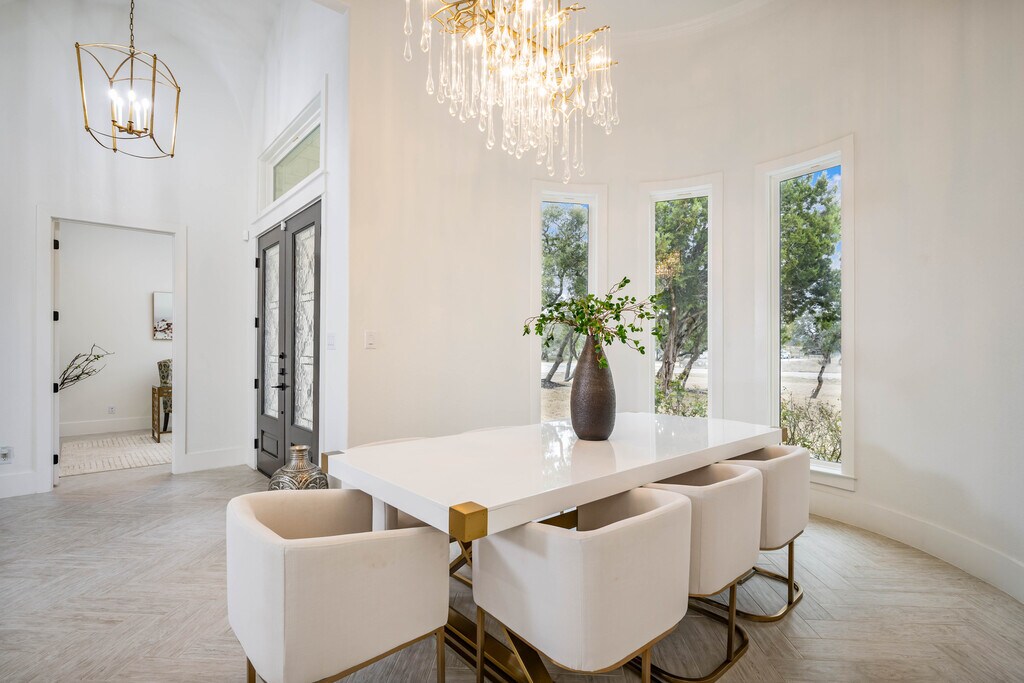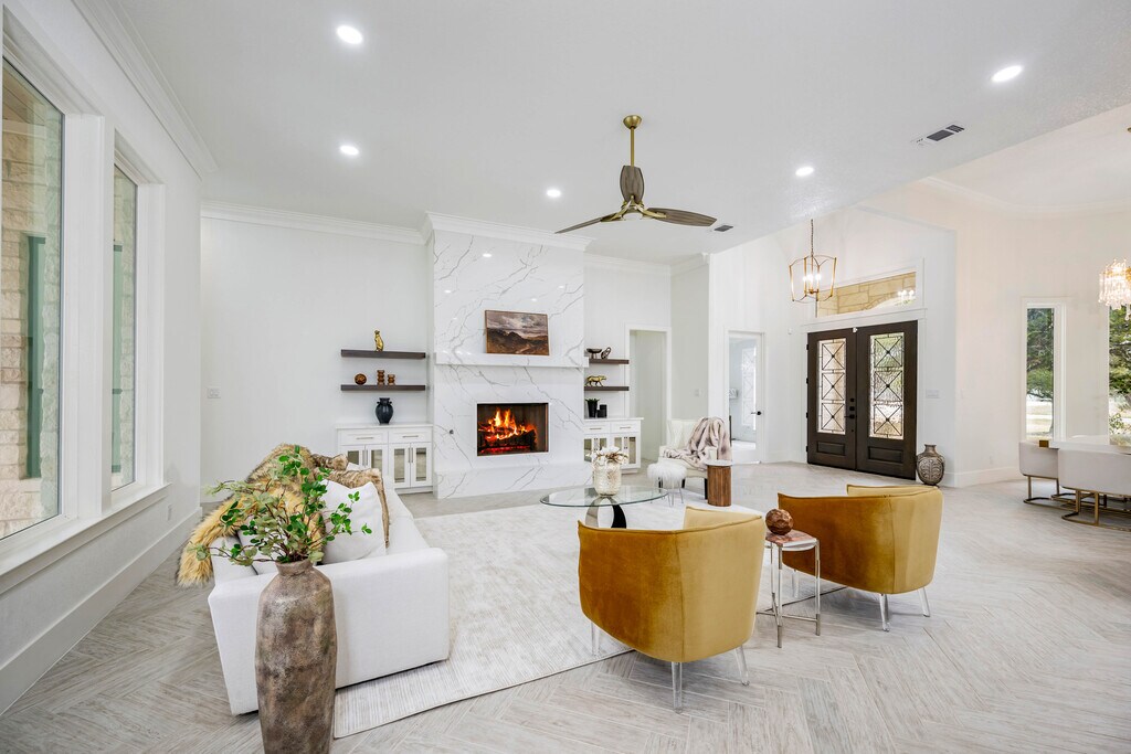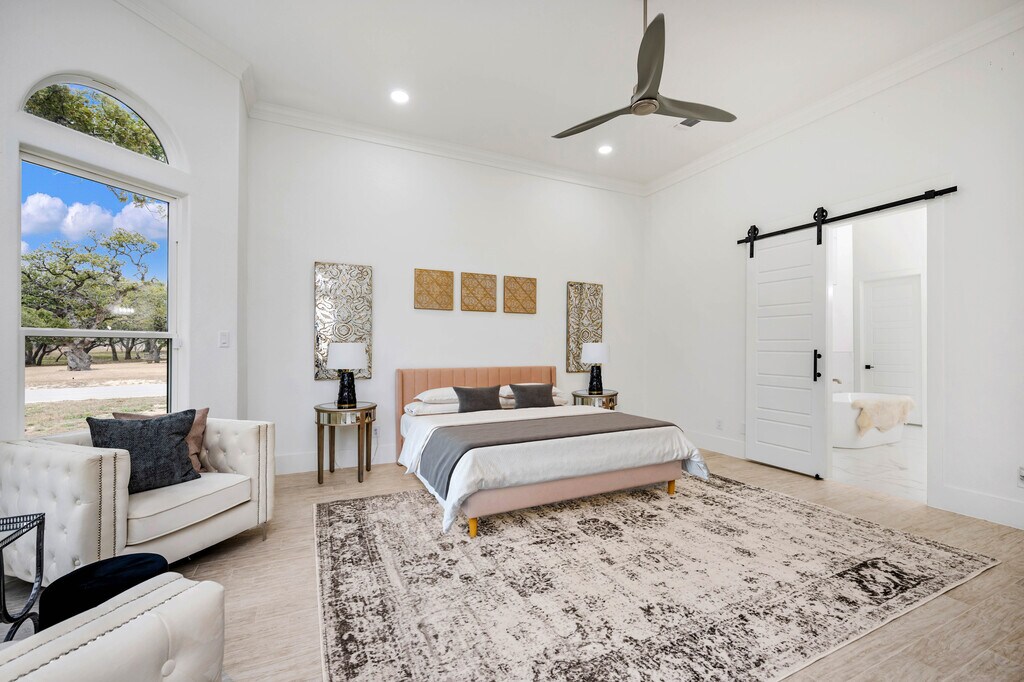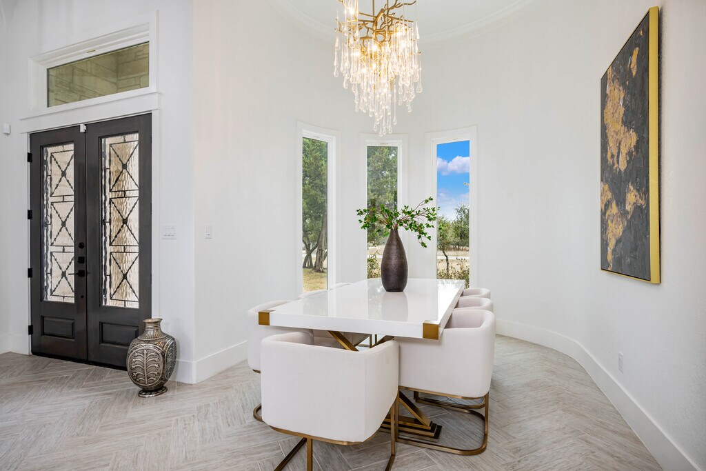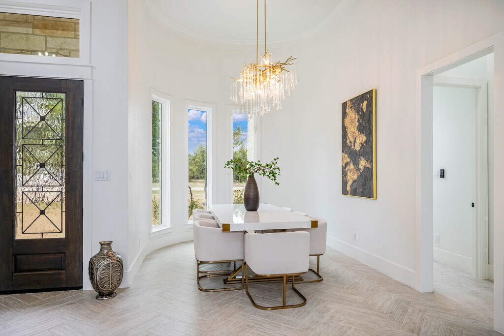 Discover a fully furnished rental home where craftsmanship, luxury, and thoughtful design come together within the prestigious Belle Oaks Ranch community. Situated on over an acre of prime corner lot land, this custom built residence stands apart through its quality of construction and refined architectural detail. Offering over 4,000 square feet of living space, the home features five bedrooms, four full and two half bathrooms, and an open floor plan designed for both comfort and functionality. A grand double door entry leads into soaring 12 foot ceilings and expansive windows that fill the home with natural light, creating a bright and inviting atmosphere throughout. The kitchen serves as the heart of the home, appointed with premium Dacor appliances, dolomite countertops, and custom Michael Edward cabinetry, delivering a seamless balance of design and performance. The primary suite provides a private retreat with a soaking tub, oversized walk in shower with privacy glass, and a custom walk in closet. Large windows overlook mature oak trees, enhancing the sense of privacy and tranquility. Upstairs, a spacious game room with a private terrace offers additional living space, along with two secondary bedrooms ideal for guests or flexible use. Exceptional construction sets this home apart, including an impressive 80 percent stone exterior, reinforced framing, and a foundation built with long term structural integrity in mind. Energy efficiency was a priority, with over a foot of spray foam insulation installed throughout the home and attic for enhanced comfort and reduced utility costs. Every detail was selected with purpose, resulting in a residence that feels solid, refined, and built to last. A rare opportunity to lease a home defined by quality, space, and elevated design.
