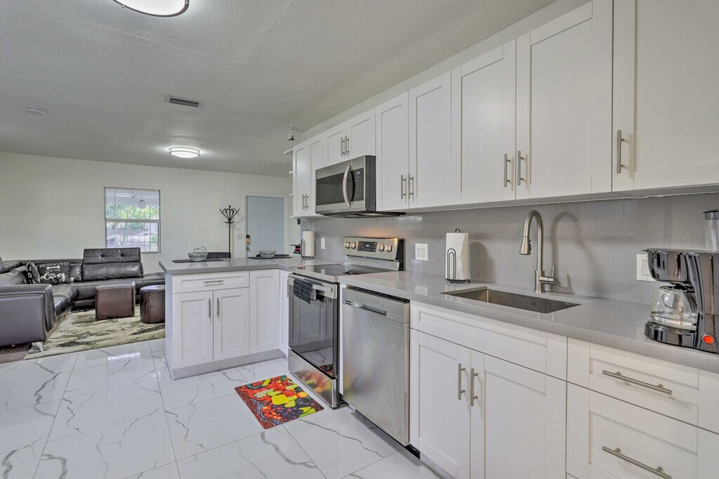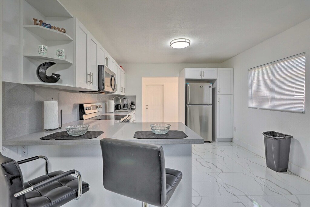 Whether you’re visiting on business or making a summer getaway, feel at home in this 2-bedroom, 2-bathroom vacation rental in The Sunshine State. This home features a recently updated kitchen stocked with all your must-have appliances, a cozy living room for lounging, and a large backyard for your four-legged friends to enjoy. With easy access to the highway, you can explore the great outdoors at Everglades National Park or spend the day on South Beach. This apartment offers a smart TV, PlayStation with games, a breakfast bar, and a Serta adjustable bed frame. The kitchen is fully equipped with a dishwasher, refrigerator, stove/oven, microwave, blender, drip coffee maker, toaster, dishware and flatware, cooking basics, and spices. Pet friendly with a $50 fee plus additional fees and taxes. Parking is available with covered spaces for three vehicles and a driveway space for one vehicle. Located close to the highway, this apartment provides easy access to explore the great outdoors at Everglades National Park or enjoy a day on South Beach. The quiet neighborhood ensures a peaceful stay. This property features four exterior security cameras facing outward for your safety. Guests will have access to the entire property via self check-in. Smoking is not allowed and no events, parties, or large gatherings are permitted. A pet fee is required pre-trip. Guests must be at least 21 years old to book. Additional fees and taxes may apply. A photo ID may be required upon check-in. Registration Number: [SI]
