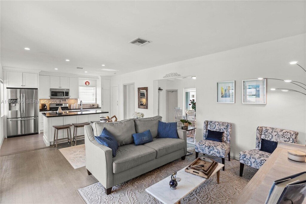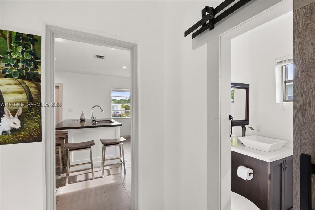 Fabulous fully remodeled 3/2.5 single family home in highly sought after school area. Walking distance from top public & private schools. Open floor plan, solid hardwood floors and ceramic tile. Kitchen features modern custom cabinets, Samsung stainless steel appliances, five burner gas stove, dishwasher & French door refrigerator. Kitchen island seats 5 and provides additional storage to the two built-in pantries. Behind the stylish double barn doors you will find the guest bathroom & laundry with full size washer, dryer and tankless water heater. Spacious fenced-in back yard is great for entertaining & for kids to play. Actual area is 1,417sqft & adjusted area is 1,329 sqft. MLS # A11960899