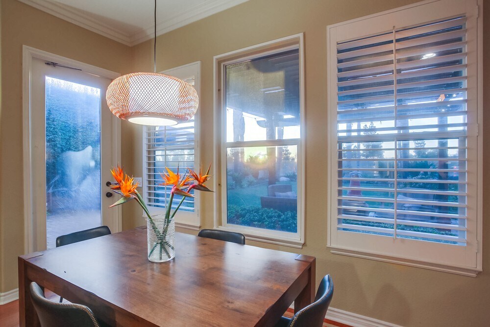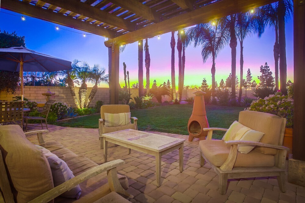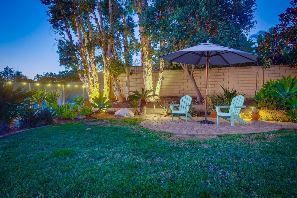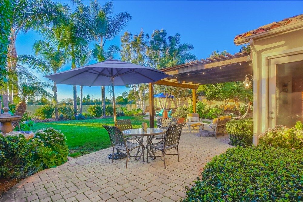 Rare single story! Stunning 3 bedroom plus office/den, 3 bathroom fully furnished home located in the heart of San Diego. Spacious property boasts a modern kitchen with stainless steel appliances, 10’ ceilings, an open-concept living and dining area, and a lush backyard with a patio for outdoor entertaining. Large primary bedroom features a walk-in closet and a luxurious en-suite bathroom with a soaking tub and separate shower. Located in the award-winning Poway Unified School District, walking distance to Adobe Bluffs Elementary School (less than a block!) and Westview High School. Backyard is a serene oasis, surrounded by vibrant foliage. Patio is designed for relaxation and entertainment, featuring a patio cover with comfortable seating, ideal for dining or enjoying the beautiful San Diego weather. String lights overhead create a cozy ambience in the evenings. Backyard offers a perfect balance of tranquility and functionality. Rent includes water & sanitation/sewer service. $750 surcharge for electricity, gas (capped)- GIG-speed Wi-Fi mesh network- cable service- landscape maintenance, and pest-control service. Text Matt .