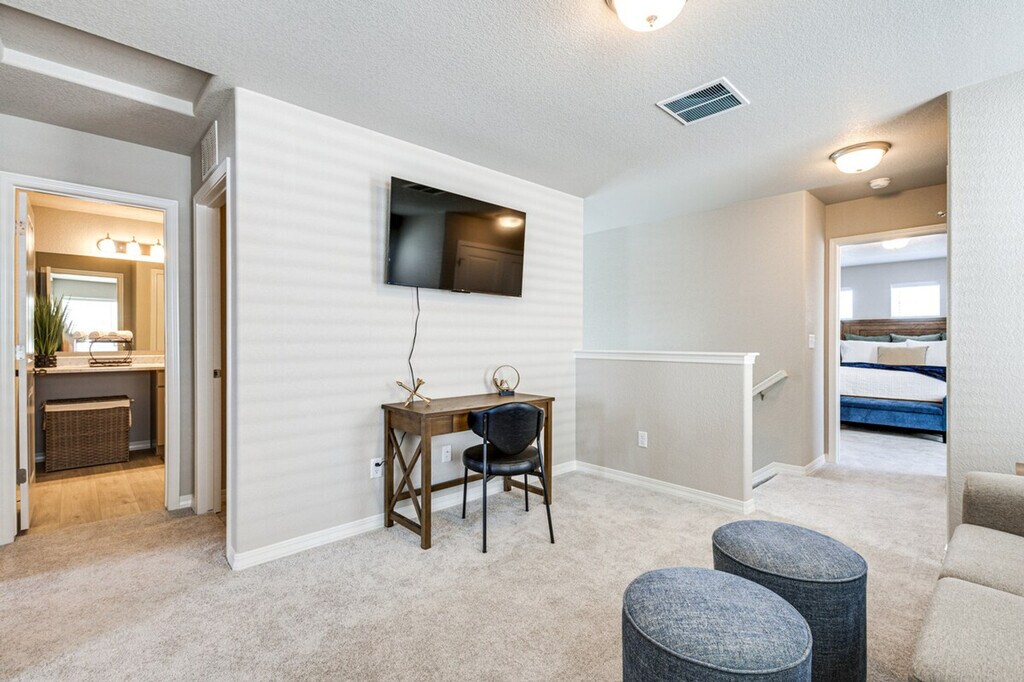 Feel at home in this vacation rental in Colorado Springs, primed for an extended stay. This 3-bedroom, 2.5-bath house delivers must-have amenities and space to spread out, making it great for groups and traveling professionals. This 2-story home requires a small step to enter, and all bedrooms are located on the 2nd floor. This inviting property offers the ideal home base for work and play. Stream your favorite shows and savor meals in the modern kitchen, equipped with stainless steel appliances, a stove/oven, refrigerator, dishwasher, microwave, toaster, Keurig coffee maker, dishware/flatware, and cooking basics. Additional features include a dining table, breakfast bar, fenced backyard, central air conditioning and heat, a washer/dryer, linens, and towels. Garage parking is available for 2 vehicles, and driveway parking is available for 2 vehicles. Enjoy proximity to nearby trails from this centrally located home. Smoking, pets, events, parties, and large gatherings are not allowed. Additional fees and taxes may apply, and a photo ID may be required upon check-in. Includes smart TVs and a laptop workspace. [SI]