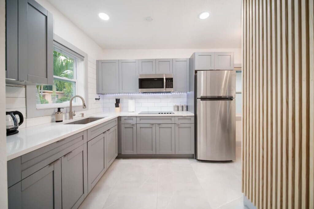 Traveling on a budget doesn't mean compromising on style in this newly renovated and designed 1-bedroom apartment in the safe Victoria Park area, central to the Art District and the Las Olas party scene. Feel at home and enjoy a lavish experience without breaking the bank. This space comes with a private bedroom attached to a full bathroom and a private enclosed yard with a hot tub. Amenities include an outdoor shower and a patio. An extra parking space is available if you utilize the parking space on the side. Pets are welcome with a fee of $20 per pet per night for 1 pet and a fee of $30 per pet per night for 2 pets. Victoria Park is the hidden gem of Fort Lauderdale, providing the tranquility and safety of a suburban neighborhood while still being right in the center of the downtown party scene from Las Olas, the Galleria Mall, and the Art District. Located incredibly near the beach, Fort Lauderdale Airport, and Port Everglades, this location checks off all of the must-haves while excluding the intensity of being in a busy city. At the intersection of NE 15th Ave and Sunrise Blvd, there's a Walgreens Pharmacy and Publix Grocery Store right across the street, just a few blocks away from our home. There's a park called Holiday Park literally right across the street, and Las Olas and the beach are just about 5 minutes away. Check-in time is 4pm and check-out time is 11am. Fort Lauderdale city ordinance quiet hours are from 10pm to 8am. No unauthorized guests are permitted after 12am. Smoking inside the house will result in a $350 fine. If more than 3 complaints are received about a pet creating a noise disturbance, it may result in the termination of the reservation without a refund. [SI]