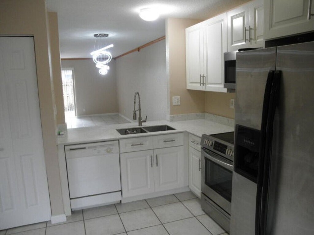 Courtesy of Rent Florida Realty INC Posted by Andrew Coleman with EXP Realty . Immaculate Town-home where you can walk to the shops and community pool. Corner unit with over 1400 sq ft of living area with all tile flooring on the 1st floor, wood flooring upstairs, an open kitchen with granite countertops and stainless steel appliances, a service counter into the dining area and a private fenced in back patio.