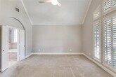 Discover the perfect blend of style and comfort in this beautifully maintained 3-bedroom, 3-bathroom home located on a desirable cul-de-sac lot in the Foxchase Community. With its thoughtful layout and attention to detail, this residence offers the ideal setting for modern living. Step inside to find a spacious one-story layout featuring a split floor plan that ensures privacy and convenience. Spacious family room with wood flooring opens to the kitchen. Kitchen offers white cabinetry, granite countertops, stainless steel appliances & a walk-in pantry. The primary bedroom is a true retreat, boasting a large 16x7 walk-in closet. En-suite bath is designed for luxury and relaxation with a frameless shower and jetted garden tub. An additional spacious bedroom, complete with its own full bath, provides ample accommodation options. The interior is enhanced with designer light fixtures, plantation shutters that offer both aesthetic charm and control over natural light. A dedicated office space ensures you're equipped for productivity in the comfort of your home. The living areas blend seamlessly, creating an open yet cozy atmosphere perfect for both entertaining and everyday living. Outside, enjoy the tranquility and privacy offered by mature trees & a board-on-board fenced backyard, complete with an electric gate. Host gatherings or simply unwind on the covered patio and deck. Oversized two-car garage with built in cabinets for additional storage space. Its prime cul-de-sac location not only enhances curb appeal but also offers a peaceful setting away from through traffic. This Rockwall gem combines functionality with appealing aesthetics, making it a must-see home in a coveted area with convenient access to local amenities. Whether you're seeking a serene retreat or a well-appointed base for an active lifestyle, this property meets all the criteria. Discover all this home has to offer and envision your future within its walls.