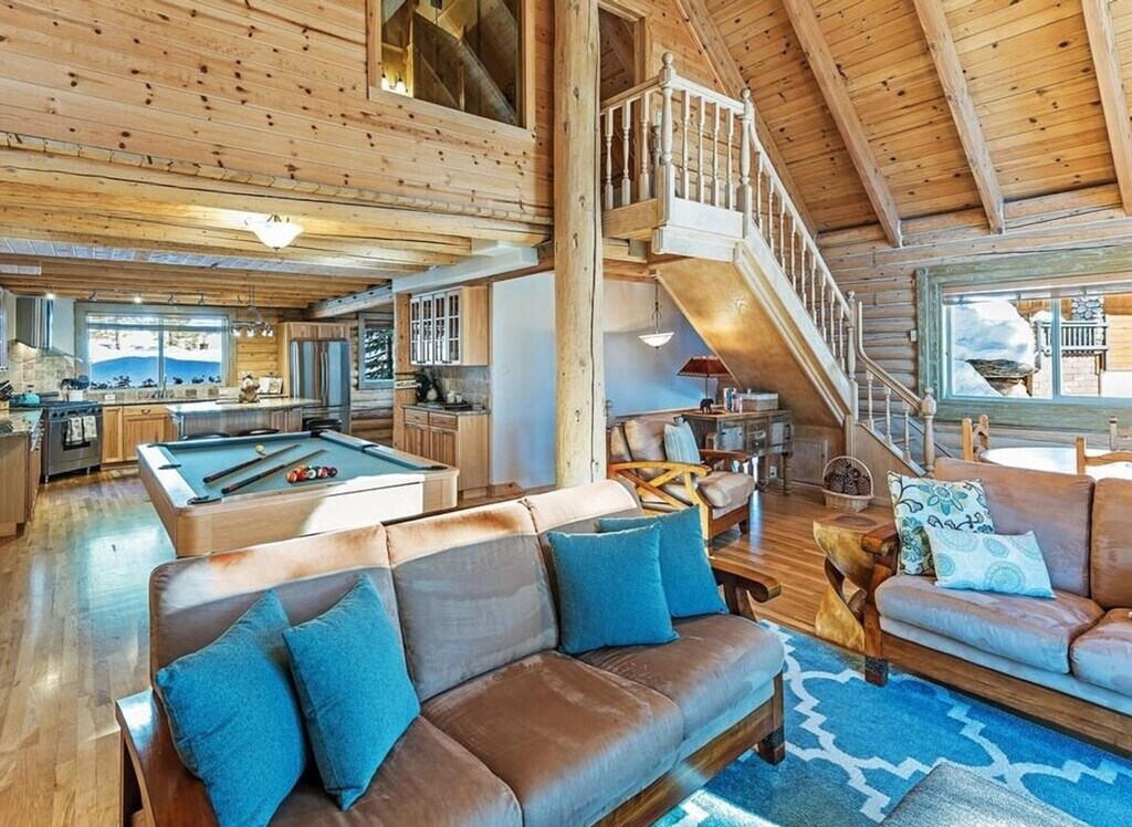 This beautiful, remodeled 5 BR, 5.5 BA log-cabin home with an attached 2 car garage exemplifies Tahoe mountain living at its finest! The entry level includes an open living room with cathedral beamed ceilings, river rock gas log fireplace and opens to the upper deck with a peek of the Lake. The gourmet kitchen boasts granite countertops, high-end stainless appliances, a kitchen island and an adjoining family dining area- perfect for hosting the holiday get-together! Stairs from the living room lead to an upper level with one of four ensuite bedrooms. Head down to the middle level with a family room with gas log stove and access to the middle deck and hot tub. This level has 3 ensuite bedrooms and laundry room. A final set of stairs brings your to the lower level which offers 1 ensuite bedroom plus a bonus room with built-in bunkbeds and access to a deck and yard. This home is the Tahoe dream- rustic, charming, unique, and just minutes from everything Incline Village has to offer