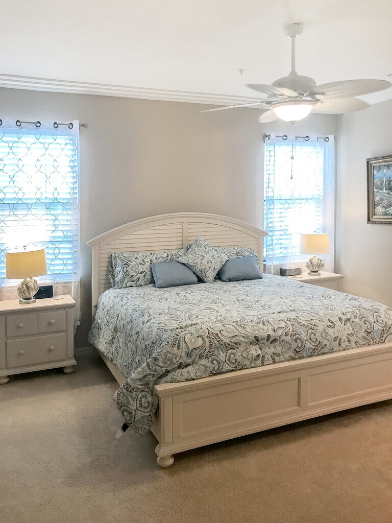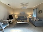 Two story town-home in resort community. Fully furnished with all the amenities needed for a memorable vacation. Highly sought after Quad in Paseo. -First floor includes kitchen, dining room, living room and half bath. -Second floor includes master suite bedroom with king bed and, walk in closet. Master bathroom includes dual sinks. -Guest bedroom with full size bed and twin bed. 30 day minimum lease. $6,000 January Through April 2027 Paseo residents have access to Lee County's finest amenities. Paseo has won its 9th consecutive Community of the Year Award from the Lee Building Industry Association, as well as several Pinnacle Awards for residential design and amenities. Residents do not even have to leave the community for dining and entertainment. For casual dining, The Paseo Pub serves up sports along with its pub-style fare. For fine dining, The Bistro offers gourmet meals in an elegant atmosphere. In addition, the center includes an old-fashioned ice cream shop, an Internet cafe and a coffee shop. A 90-seat village movie theater gives residents a private, on-site venue to enjoy the best or newest releases without having to fight crowds. All are priced very reasonable. The Paseo Village Center includes a full-service concierge, its own library, business center and mail center. The free-form pool has earned a Pinnacle Award for Best Pool Design. It includes elaborate waterfalls and rockscapes, as well as a poolside gazebo serving refreshments. Adjacent to the main pool is a large spa, a fitness oriented lap pool and a children's water playground. The Paseo sports center has six Hydro-Grid tennis courts, a fishing pier, four bocce ball courts, a basketball court, and beautiful streets to enjoy biking or walks. There is also a Lifestyle Park with four chickee huts, a sand volleyball court, horseshoe pits, grilling areas, a children's grass play area and two pickle ball courts. The park is open to all Paseo residents. It joins a lakefront park with a chickee hut, comfortable seating and hammocks on the west side of Paseo. Wireless, high-speed internet and HD cable TV are provided in this rental. Also included is just about any appliance or kitchen gadget you will ever need. All towels, sheets, and pillows, etc. are provided and of excellent quality. A washer and dryer are tucked away in the laundry closet on the second floor, near the bedrooms for easy access.