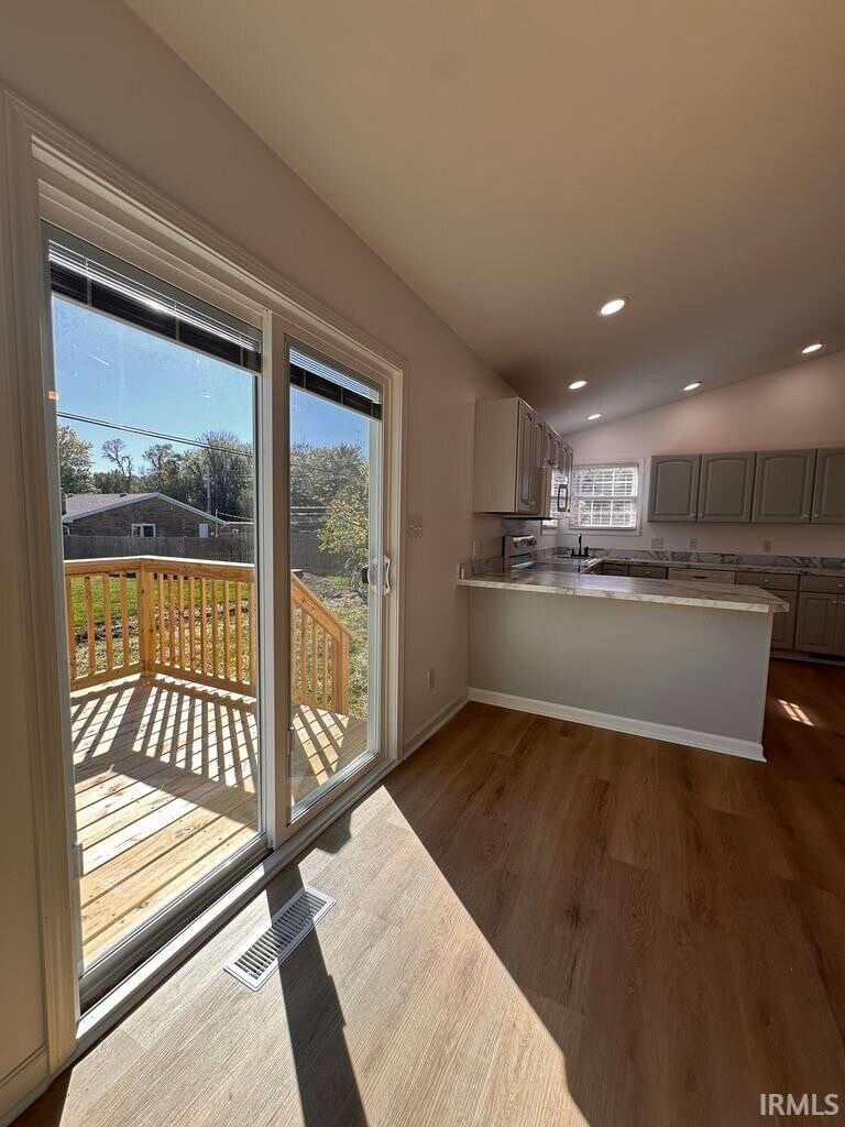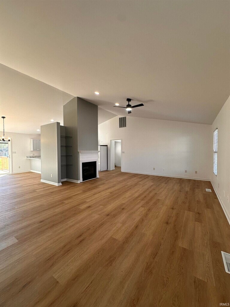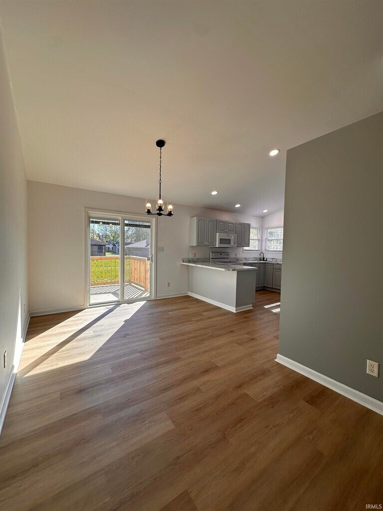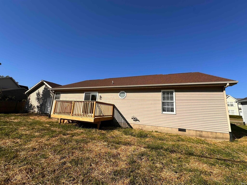 Welcome to this newly renovated 3-bedroom, 2-bath brick ranch in Country Wood Court Subdivision! Conveniently located in Newburgh, this home features new flooring, updated lighting, new countertops, modern appliances, and more. The spacious living area opens to the kitchen and dining space, creating an ideal layout for everyday living and entertaining. Enjoy the brand-new deck just off the dining area, perfect for relaxing or hosting guests. Natural light fills the home, creating a warm and inviting atmosphere. Additional highlights include a private office just off the kitchen and an open-concept layout with ample cabinet and storage space. This home requires a 1-year lease with a matching security deposit, as well as an approved credit and background check with a completed application. No smoking or pets permitted.