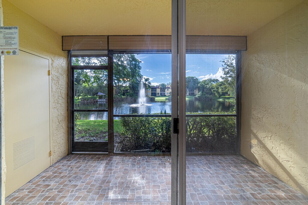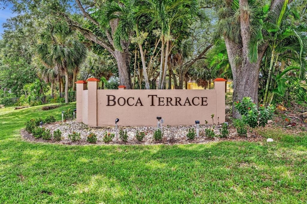 Renovated 2/2 Ground-Floor ALL-AGES condo with a GORGEOUS lake view located in the boutique-style community of Boca Terrace in Boca Raton. The moment you walk into the property, your eyes will see the lake with amazing fountain! Enjoy this wonderful view from the Screened Patio & Primary Bedroom. Features include Washer & Dryer inside, Ceramic Tile Flooring throughout, Tub and Stall Shower, & Hurricane Shutters. The lush landscaping with mature trees provide for peaceful living - enjoy as you walk along the trails. A-Rated Schools! Amenities: Clubhouse with Kitchen, Two Pools, Hot Tub, BBQ, Billiards, Library, Shuffleboard, & Tennis Courts. Located across from Sugar Sand Park. Short distance to Town Center Mall, Mizner Park, Lynn University, & Florida Atlantic University.