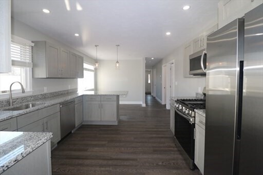 Eva OlszewskiGorgeous 5-room, 2-bedroom, 2-bathroom, single-family home available for February 1st rental. Completely renovated in 2022, this home offers one-level living, modern kitchen with all new stainless steel appliances, granite counters, peninsula, pendant lights, gas stove, which flows into a dining area, a spacious living room and bedrooms, two full baths, recessed lighting throughout. In-unit laundry, Central AC, and new gas heating system, 2 off-street parking spots. Conveniently located near all shopping, banks, restaurants, beaches, and Whitman s Pond. Easy access to Rt. 3 and only steps to a bus. No pets and no smoking. Excellent credit and references are a must!