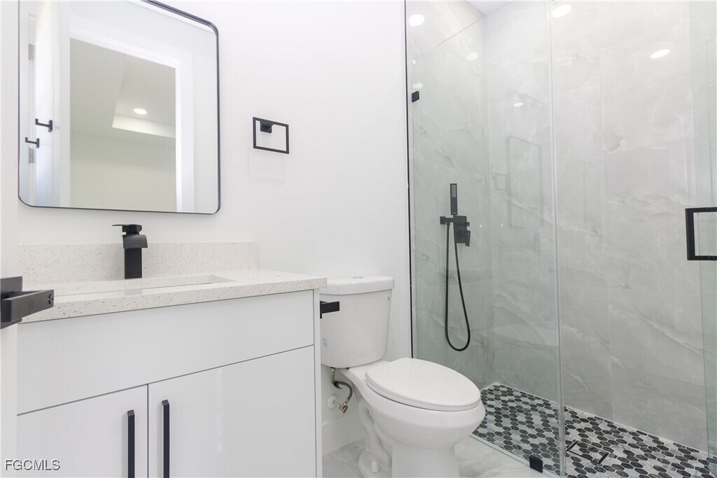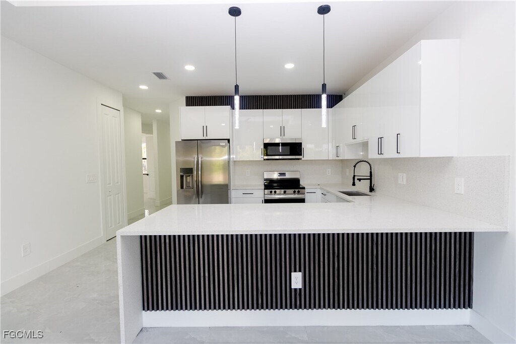 Brand New Construction Duplex in Lehigh Acres! This modern masterpiece features 3 bedrooms and 2 bathrooms,blending high-end aesthetics with functional design. The stunning gourmet kitchen boasts white quartz waterfall countertops,high-gloss cabinetry,and premium stainless steel appliances. Enjoy an open-concept layout with large-format porcelain tile throughout! The spa-inspired bathrooms feature floor-to-ceiling marble-look tile,frameless glass showers,and matte black designer fixtures. Sleek curb appeal with charcoal garage doors,tropical landscaping,and a monochromatic finish. Washer and dryer hook-ups in garage. Schedule your showing today!