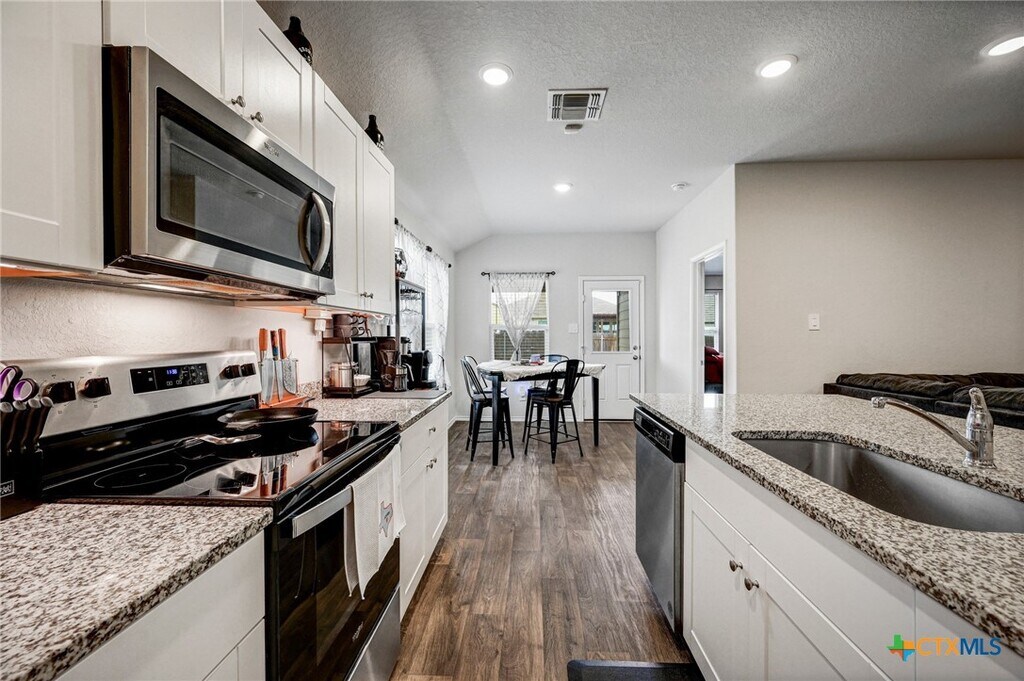 Welcome to this beautifully maintained single-story home in the desirable Arroyo Ranch community of Seguin. Built in 2023,this 3-bedroom,2-bath residence offers a bright open-concept layout with a spacious living area that flows into the kitchen and dining space. The kitchen features granite countertops,stainless steel appliances,a large island,and ample storage. The private primary suite includes a walk-in closet and en-suite bath with dual vanities and a walk-in shower. Additional highlights include a covered patio,indoor laundry,and a 2-car garage.