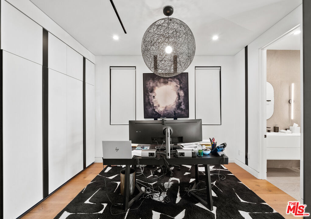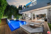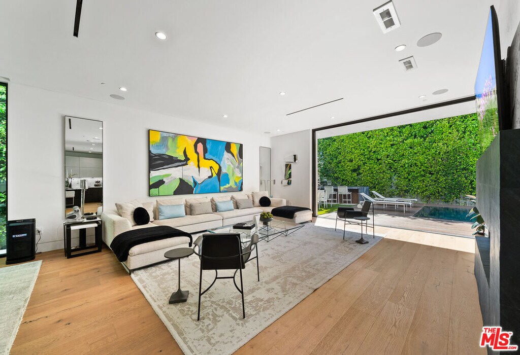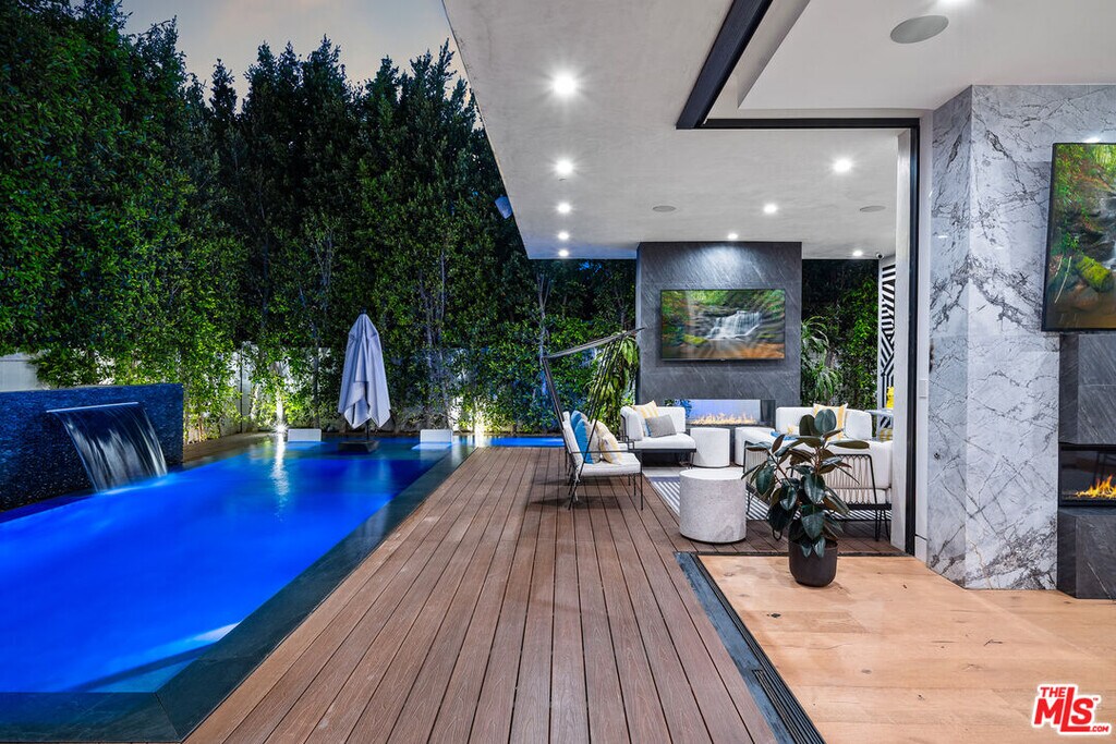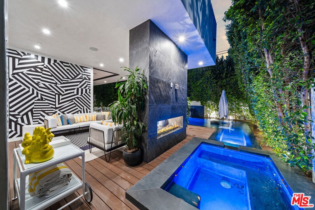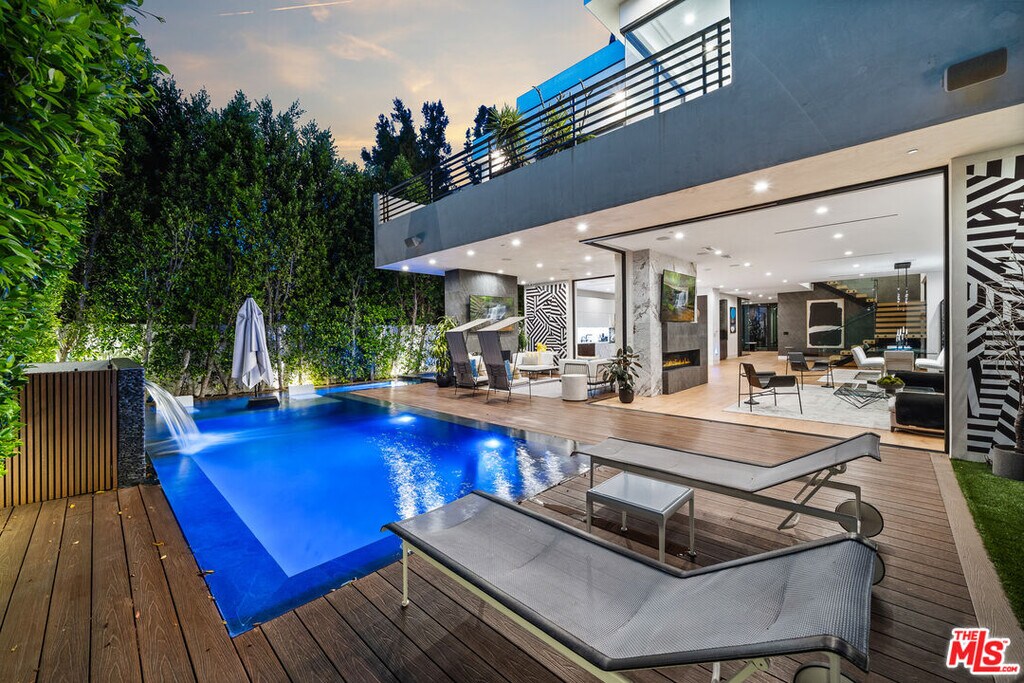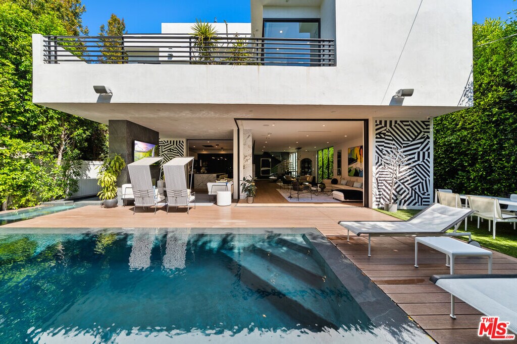 Experience the Top of modern luxury in this newer construction home in coveted Beverly Grove. Step inside to find an open-concept, light-filled space featuring striking natural stone finishes and wide plank wood flooring throughout. The Italian kitchen is ideal for hosting and includes marble waterfall countertops and world-class appliances. Indulge the indoor/outdoor lifestyle in the spacious living area with pocket doors opening to the resort style grounds. A floating staircase leads to the spa-inspired primary suite with a dressing room, 2-way fireplace, soaking tub, dual rain shower, and a private deck. Enjoy 360 city light views on the expansive rooftop deck, or entertain on the grounds with zero-edge pool and spa, fireplace, and outdoor kitchen. 3 additional en-suite bedrooms offer plenty of space, while a private office is ideal for remote work. Located just steps from L.As best dining and entertainment, this designer home redefines luxury cosmopolitan living. MLS# 25585753