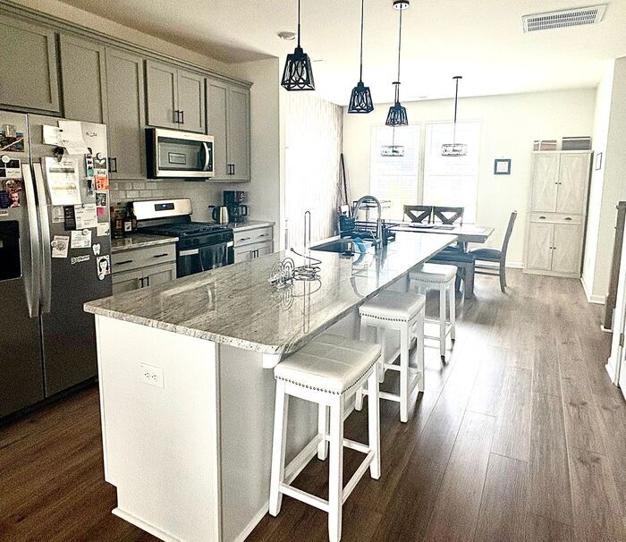 Welcome to your new home at 849 Parc Townes Dr, Wendell, NC 27591. This lovely townhome offers an open floor plan with seamless flow, making everyday living and entertaining feel effortless. With flexible living space, and a screened second-floor porch with golf course and lake views. Convenient access to US-64, I-87, and downtown Wendell, this home is ideal for commuters and anyone seeking a peaceful community with nearby city access. Key Features Open-concept layout with smooth flow between living, dining, and kitchen spaces, ideal for both relaxing and hosting Hard surface flooring throughout the living areas for easy upkeep and a modern look Stylish kitchen with modern appliances, ample cabinetry, and generous counter space for meal prep and gathering Ceiling fans for added comfort Spacious primary suite with a walk-in closet for easy organization A secondary bedroom is enhanced with soundproofing and adjustable lighting, creating an excellent option for a home office, studio, or creative workspace Unfinished first-floor area ideal for storage Washer and dryer included Private screened porch on the second floor overlooking the golf course and lake Attached one-car garage plus driveway Rental Details Move-In Costs: First month’s rent, $225 admin fee, applicable pet fees Additional Monthly: $25 lease admin fee, utilities, and pet rent Security Deposit: One month’s rent Pet Policy Up to 2 pets allowed $300 fee for first pet, $200 for second Monthly pet rent: $30 (first pet), $20 (second) Next Steps Schedule a self-guided tour or apply online at Applications are $55 per adult — homes like this go fast, so apply today to make it yours! Scam Warning All deposits, rents, and rental agreements are handled directly through Foursquare Property Management. Never send money via third-party apps, wire transfers, or prepaid cards. Contact us to schedule a showing.