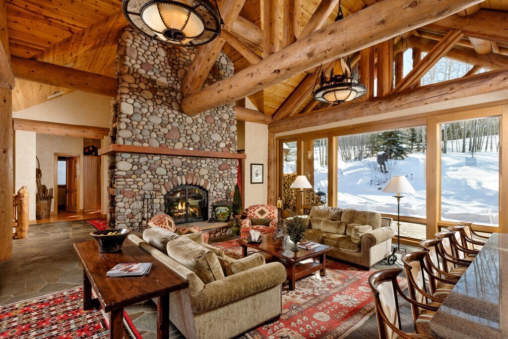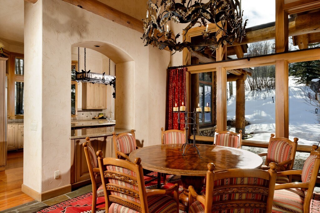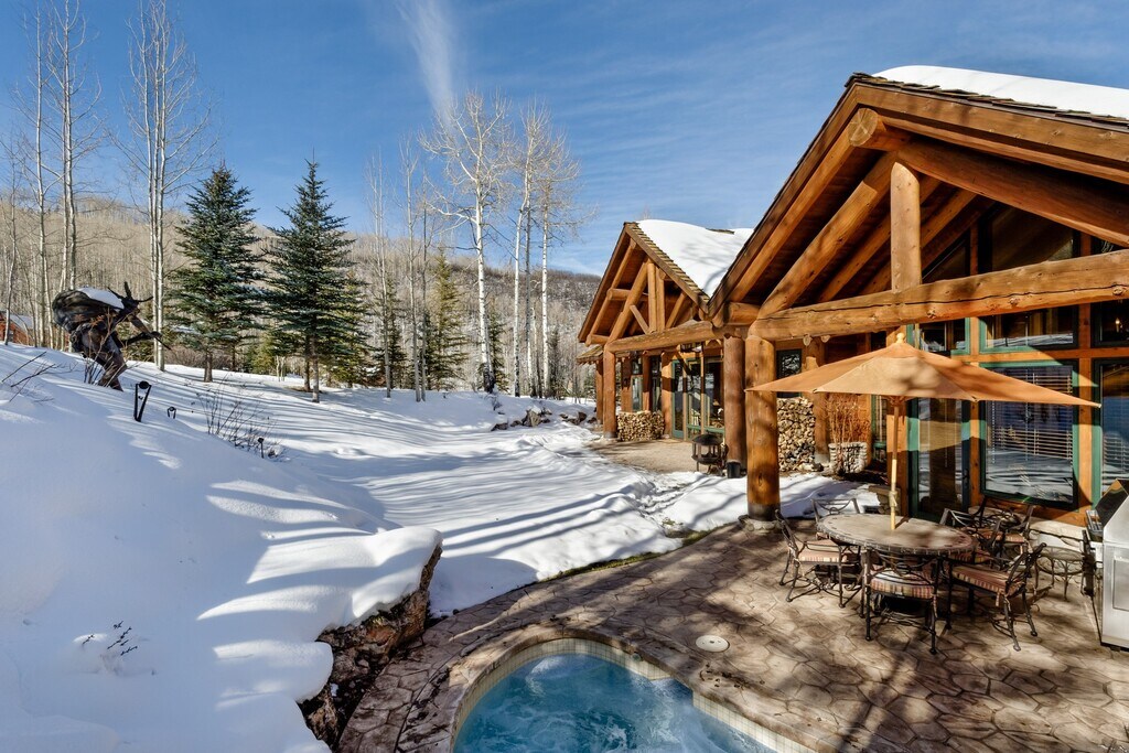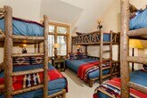 Situated directly on Cascade Run, this gorgeous Two Creeks log estate allows you to step right out to the ski run and enjoy all the breathtaking views that bring visitors to Snowmass. This authentic mountain estate greets you at the door with inviting lodge architecture including vaulted ceilings, leather wrapped handrails, custom leather and iron light fixtures, a sunken wet bar, and an enormous river rock double-sided fireplace between the kitchen and living room. The master suite features a gas fireplace and a small office off the bedroom, while the guest suite offers privacy as well as cozy fireside seating. Guests will enjoy the mountain-minded bunk room that sleeps 9. This impeccably maintained estate also boasts an advanced Apple Savant distributed A/V system, air conditioning, humidification system and a gourmet kitchen with granite countertops. The skiing experience you have dreamed of begins here. STR Permit #041358