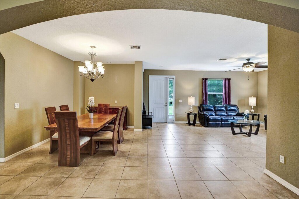 Stunning turnkey 4BR/3BA single-story home in Lyons Ranches. Located on a quiet cul-de-sac with no rear neighbors, this 3-car garage home features lush tropical landscaping and a spacious brick-paver driveway, offering exceptional curb appeal. Inside, you'll find an open-concept split floor plan with porcelain tile flooring, impact windows, and abundant natural light. The home is equipped with a 2011 roof, 2017 A/C, and an alarm system with security cameras offering both comfort and peace of mind. The kitchen is warm and inviting, featuring granite countertops, newer stainless steel appliances, ample cabinetry, a double oven, and soft recessed lighting. It opens to a cozy family room, an elegant dining area with a stylish chandelier, anda light-filled living room with peaceful views