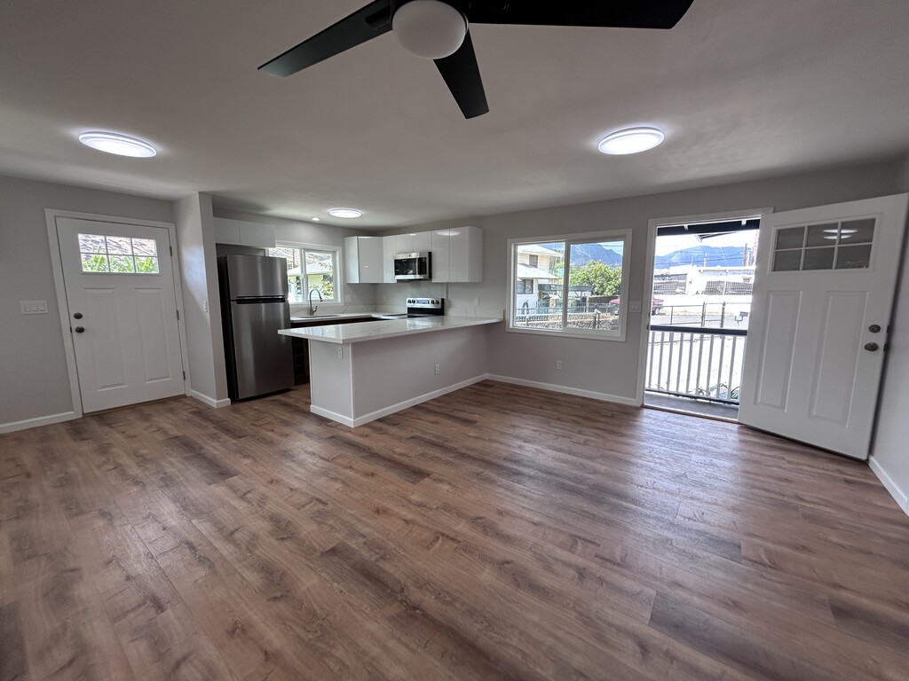 Newly renovated single story, single family home located in a cul-de-sac in beautiful west side! Conveniently near beaches, shops, schools, and dining. Luxury vinyl flooring with NEW appliances in MOVE-IN READY condition! Call/text Evelyn at for more information or to schedule showings. This beautiful three-bedroom, one and a half bathroom home is immediately available for rent in Makaha, Hawaii. This stunning property features a spacious, fully fenced 7,000-square-foot yard, modern quartz countertops, new acrylic cabinets, and brand-new appliances in the kitchen. The home offers an open-concept floor plan with a peninsula island, and the family room can serve as an additional living space with a private entry. Situated in a cul-de-sac and minutes away from stunning beaches, hiking trails, and various restaurants. Rent: $3,500 per month, plus Hawaii General Excise Tax (GET). Security Deposit: $3,500. This rental is pet friendly.