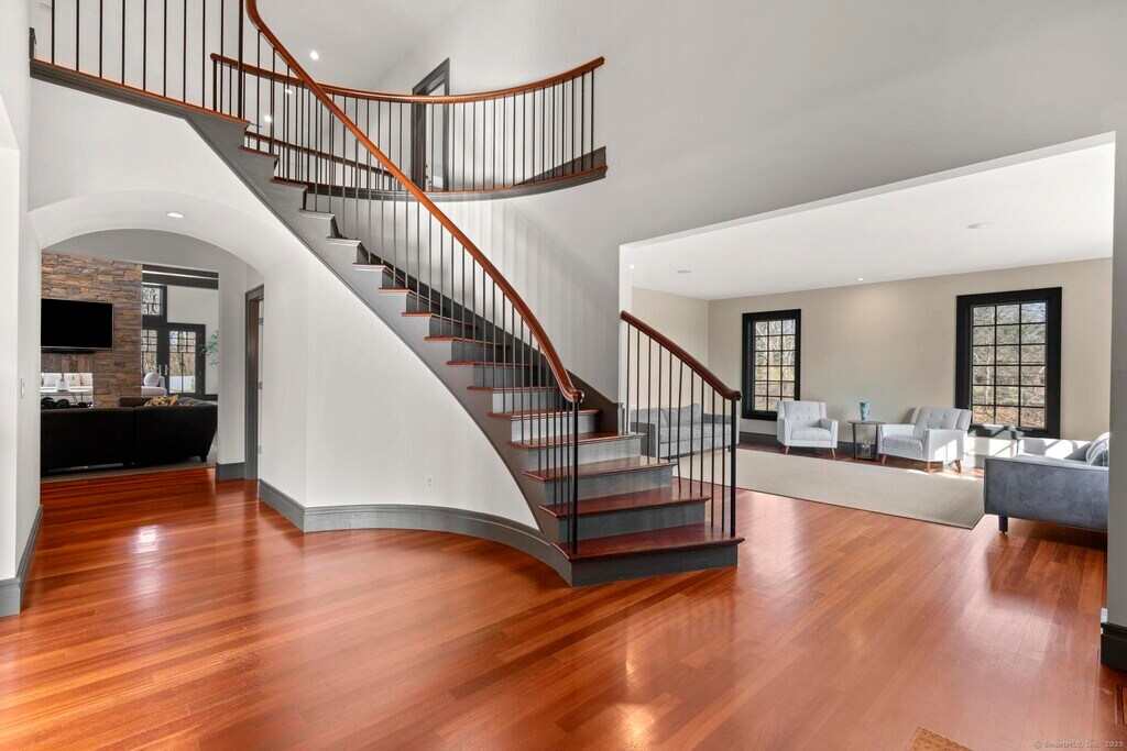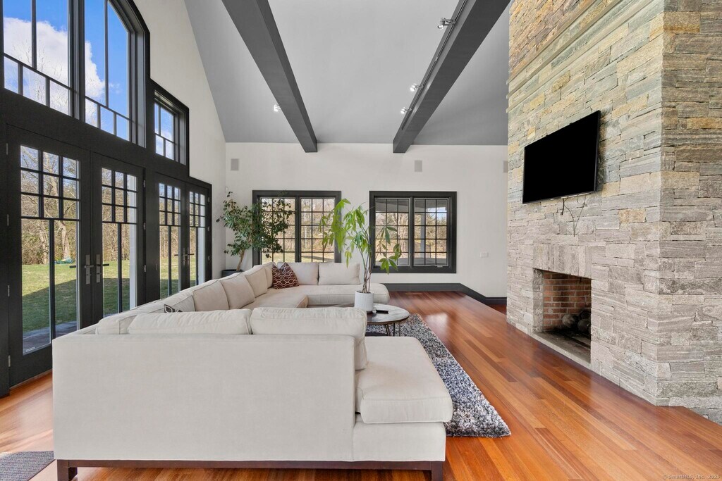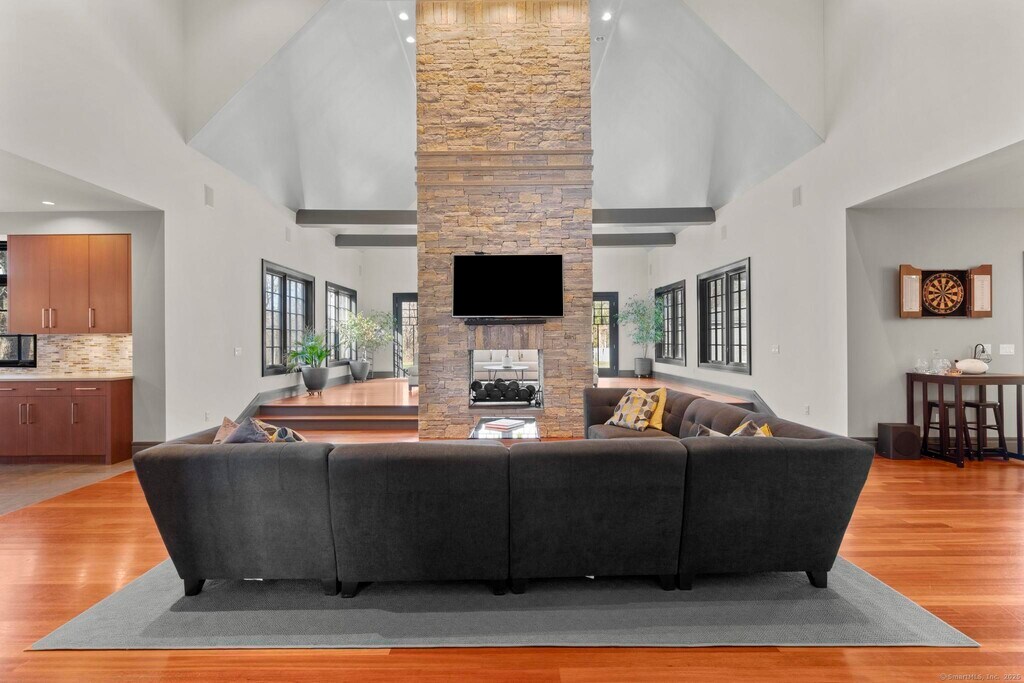Call for Availability - Owner is offering 1 MONTH FREE rent with signed 12-month lease!This stunning custom estate in Easton sits on over four private acres with a long tree-lined driveway. Inside, find more than 6,000 sq ft of elegant living space featuring Brazilian hardwood floors, oversized Pella windows, and a grand two-story foyer with a sweeping staircase. The open layout includes a formal living room, dining room with patio access, vaulted family room with stone fireplace, and a gourmet kitchen with professional appliances, granite counters, a large island, and breakfast nook. The luxurious primary suite boasts vaulted ceilings, fireplace, private balcony, spa bath with jacuzzi and rain shower, plus dual walk-in closets. Additional spacious bedrooms and a separate home gym provide comfort and flexibility. Outside, enjoy a heated Gunite pool, hot tub, stone patio, expansive lawn, and a detached 1,800 sq ft guest house. A three-car garage with Mahogany doors and a full security system complete the package. Close to top schools, Merritt Parkway, and nearby towns, this rare Easton home combines privacy, luxury, and convenience. MLS# 24122753